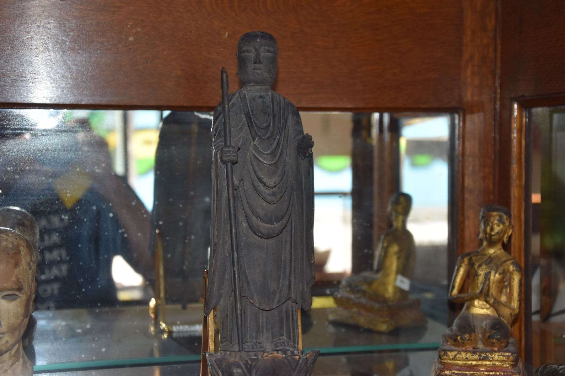 ANTIQUE JAPANESE CARVED WOOD JIZO PRIEST (10 1/2") (DOES NOT INCLUDE STAND)