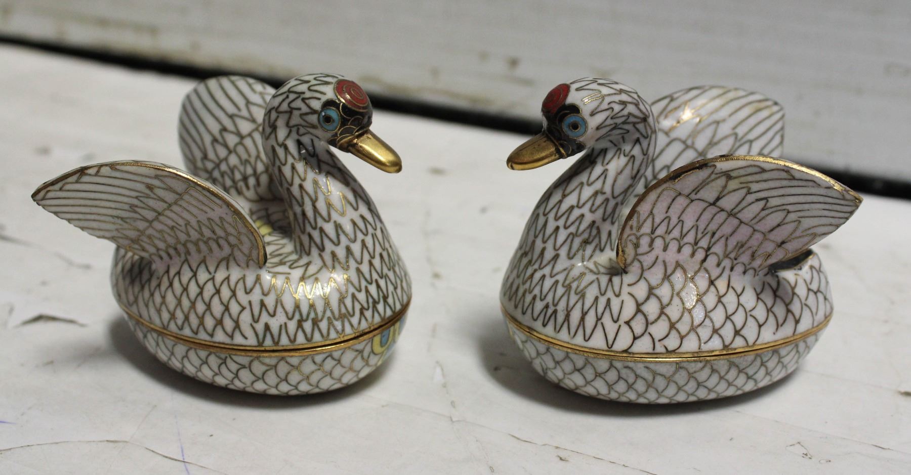 SWAN RING BOXES (1880'S-1910'S), NO CRACKS OR CHIPS, 2-3/8" H, 2-3/8" WIDE