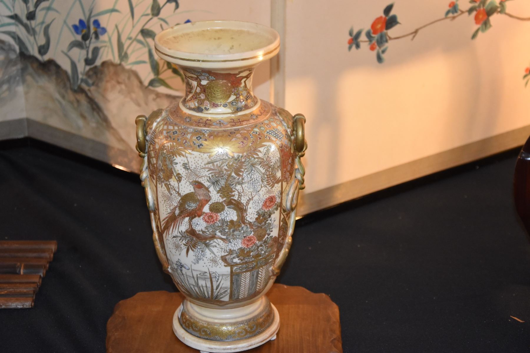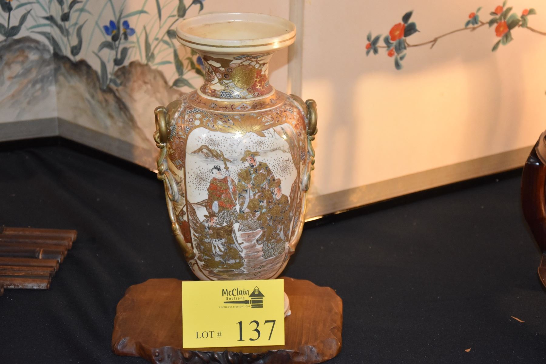 ANTIQUE JAPANESE SATSUMA VASE (12 1/2") (DOES NOT INCLUDE STAND)