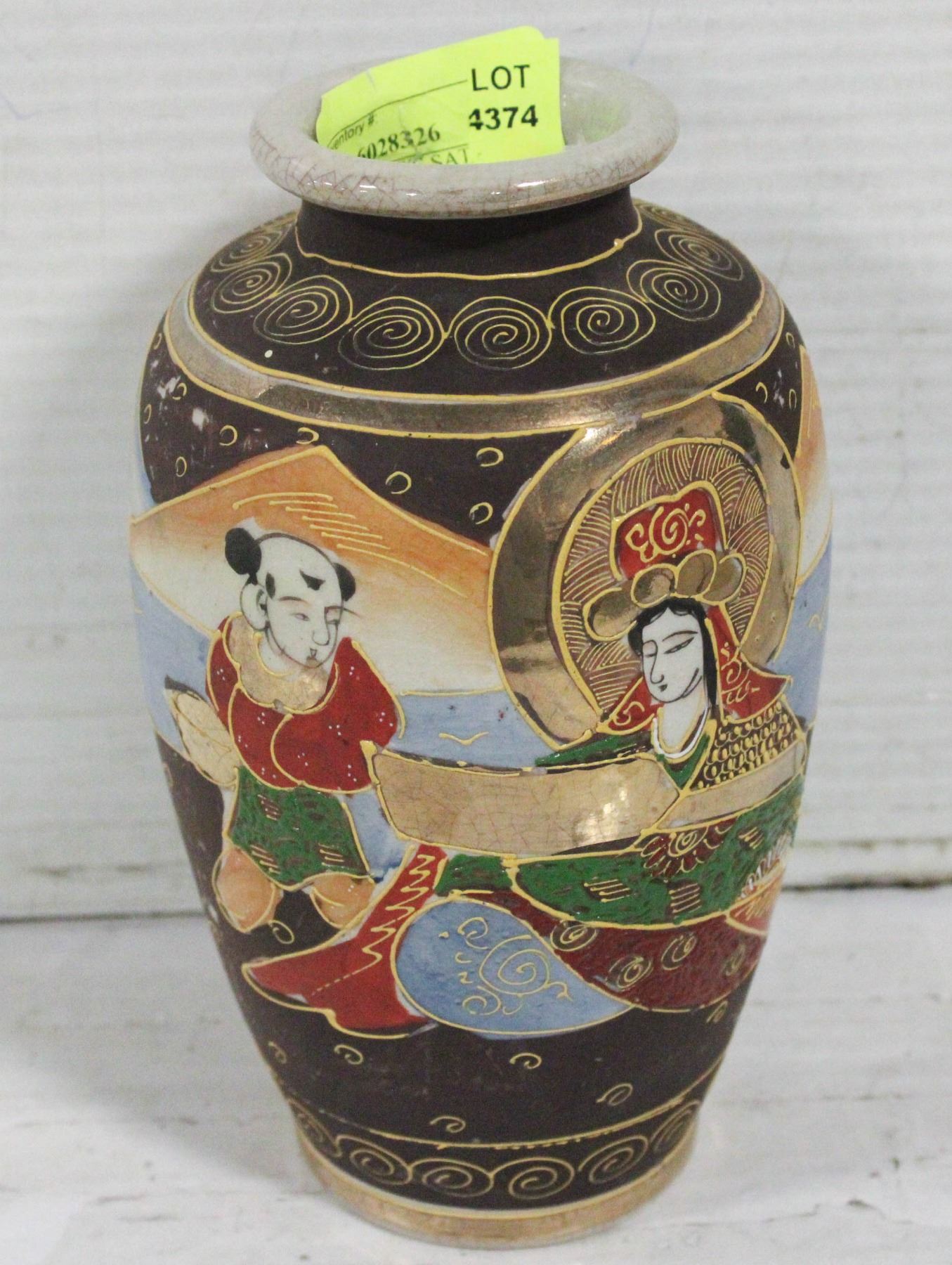ANTIQUE JAPANESE SATSUMA VASE 12" TEXTURE