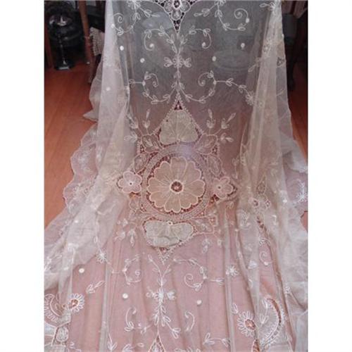 <tr><td>Title:ANTIQUE LACE BEDSPREAD TAMBOUR WORK ON NETTING</td></tr>