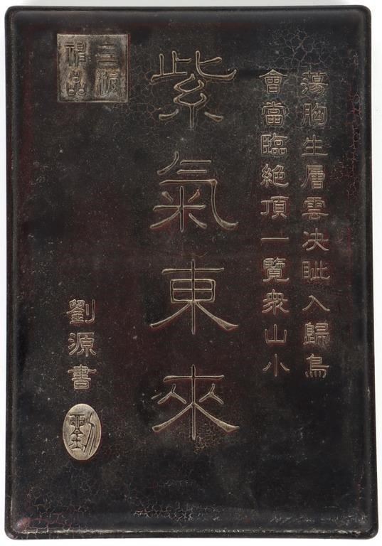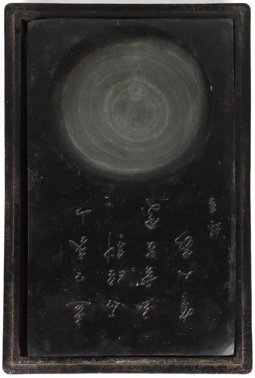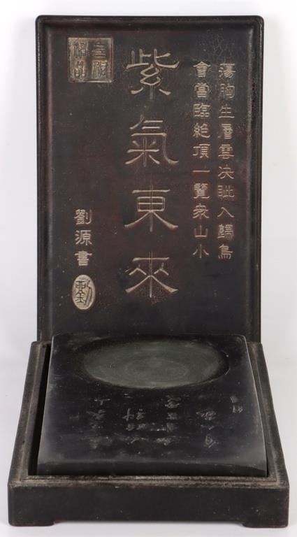 Antique large Chinese Calligraphy ink stone with lid. The heavy stone has Chinese markings and motifs.