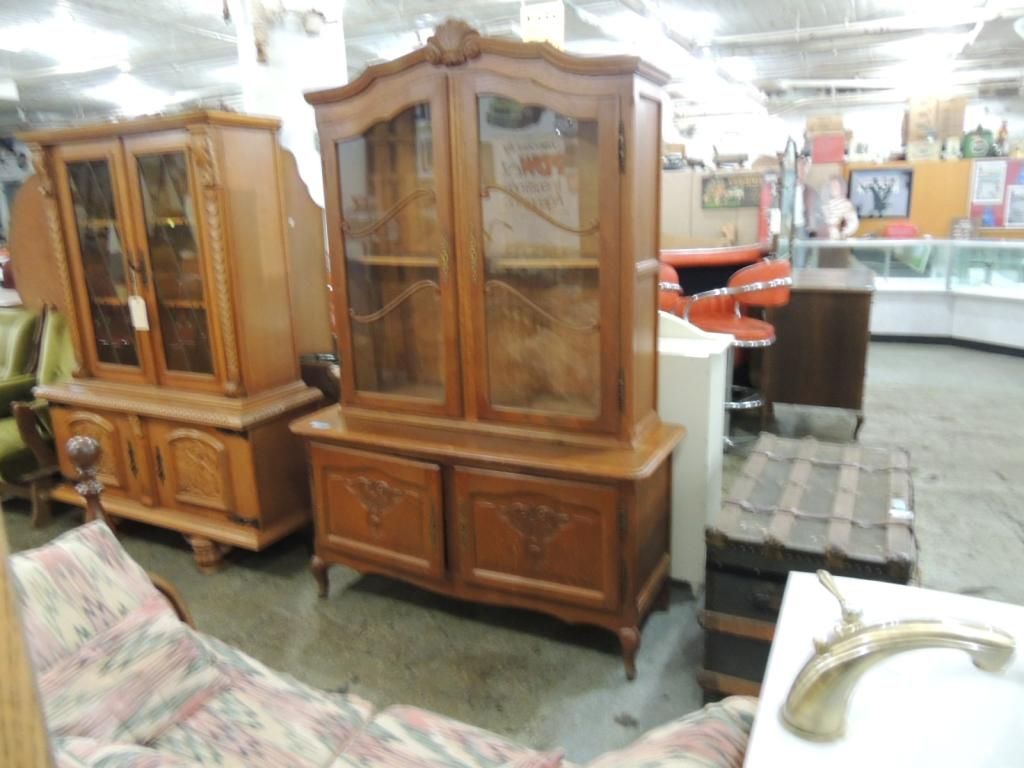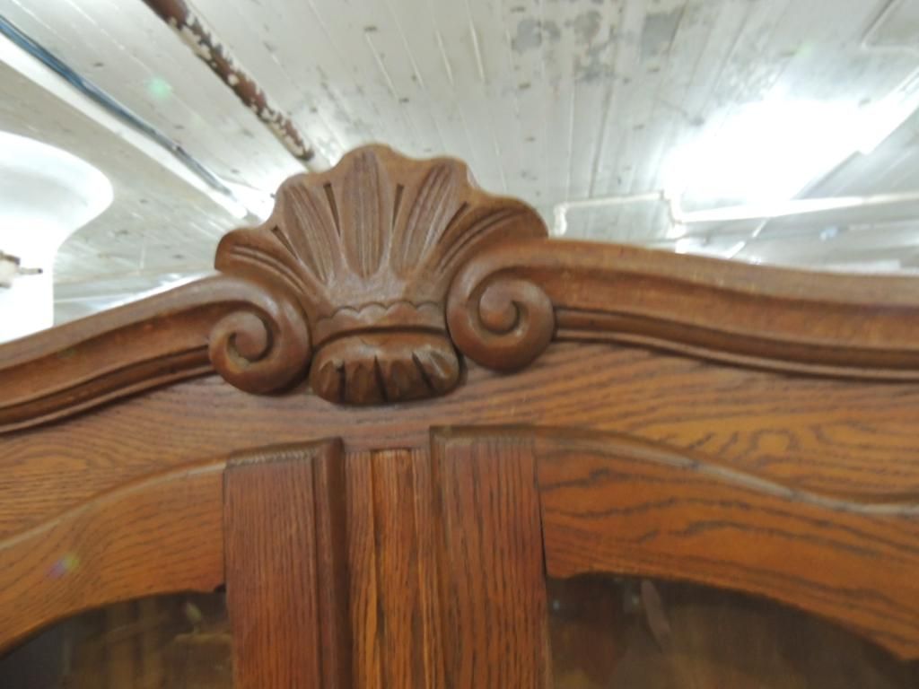 ANTIQUE LARGE HUTCH CABINET GLASS DOORS BEAUTIFUL DETAIL. GREAT FOR DISPLAYS. 49" X 76" TALL AS SHOWN SEE PHOTO FOR MORE DETAILS.