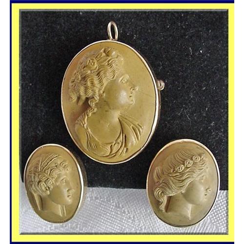 <tr><td>Title:ANTIQUE LAVA BROOCH PENDANT EARRINGS 14K GOLD </td></tr>