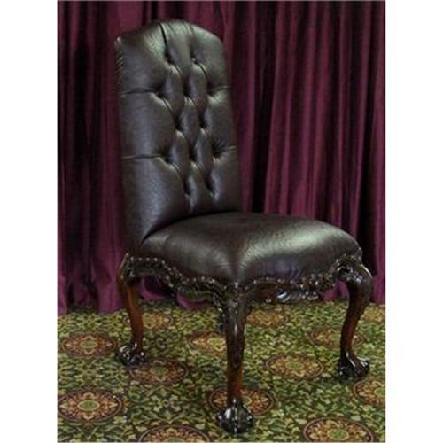 <tr><td>Title:ANTIQUE LEATHER CHIPPENDALE TUFTED ACCENT CHAIR</td></tr>