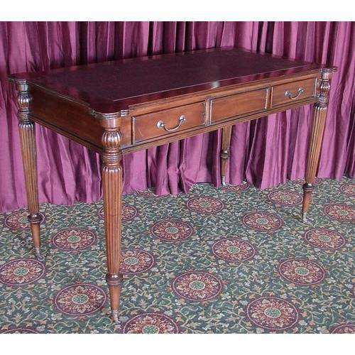 Fantastic ANTIQUE LEATHER INLAID WRITING DESK WITH BRASS CASTOR WHEELS, versatile and use anywhere!