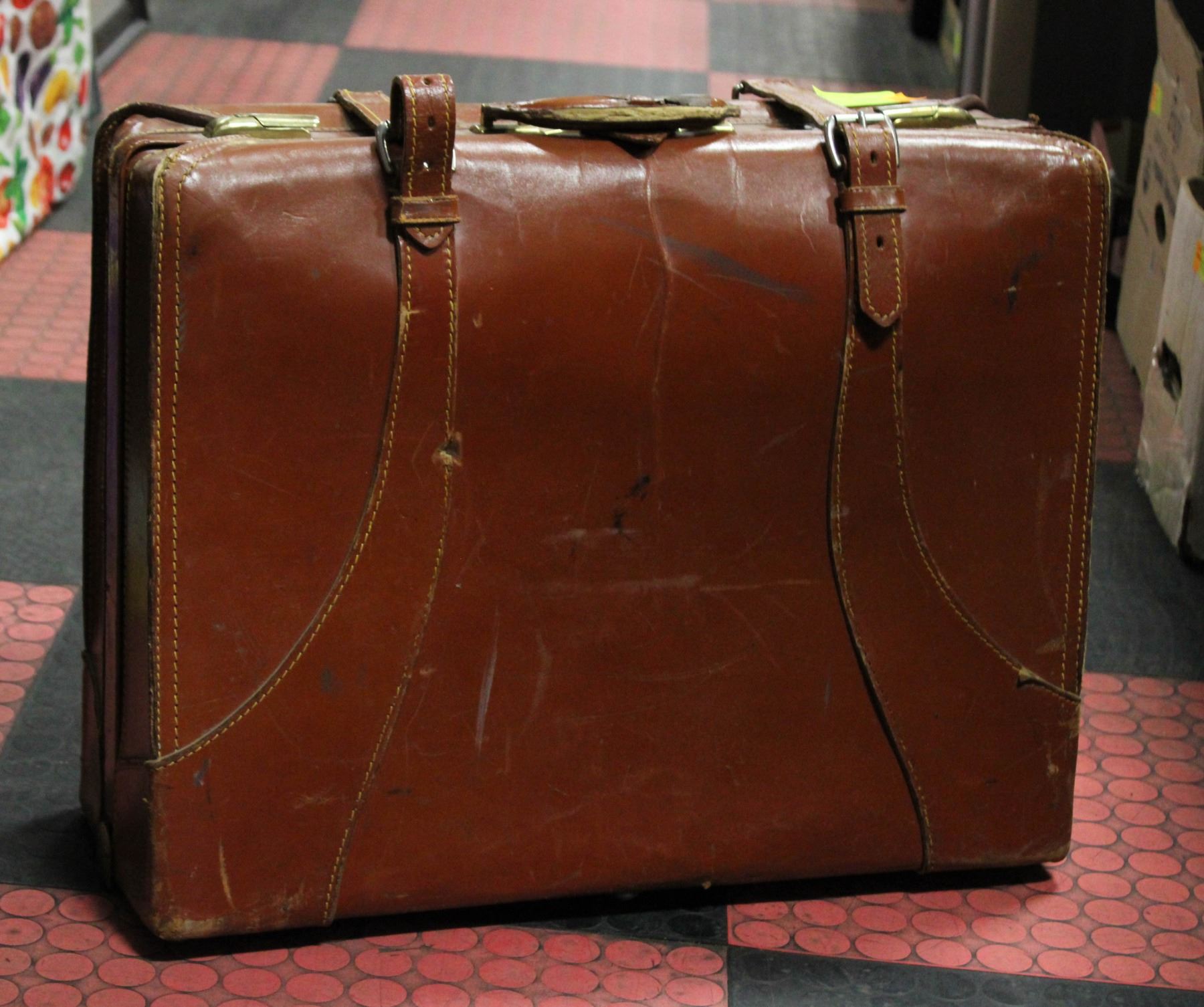 ANTIQUE LEATHER MONOGRAM SUITCASE