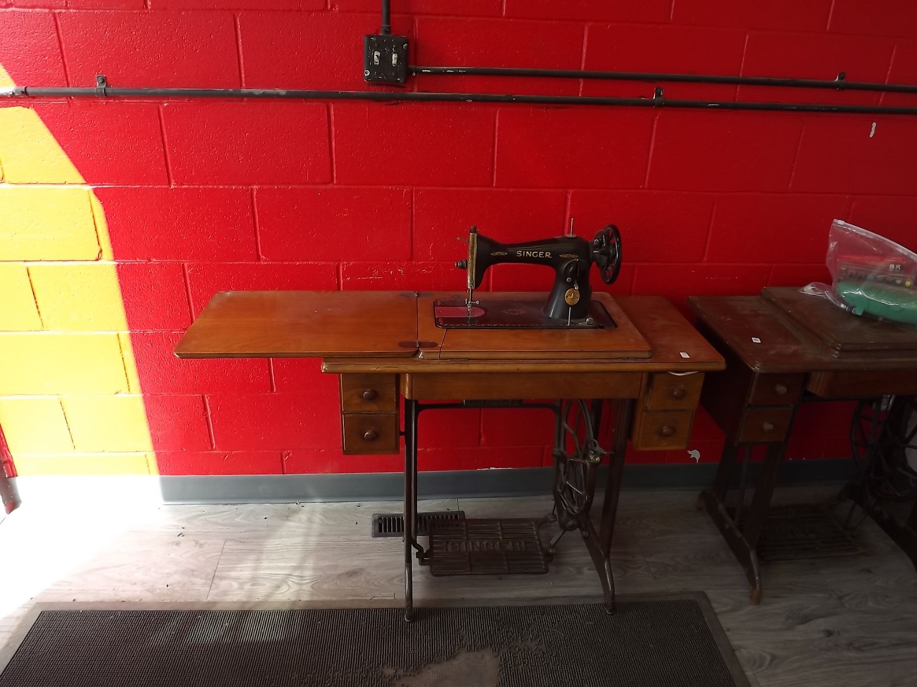 ANTIQUE LIGHT WOOD SINGER TREADLE OPERATED SEWIN...