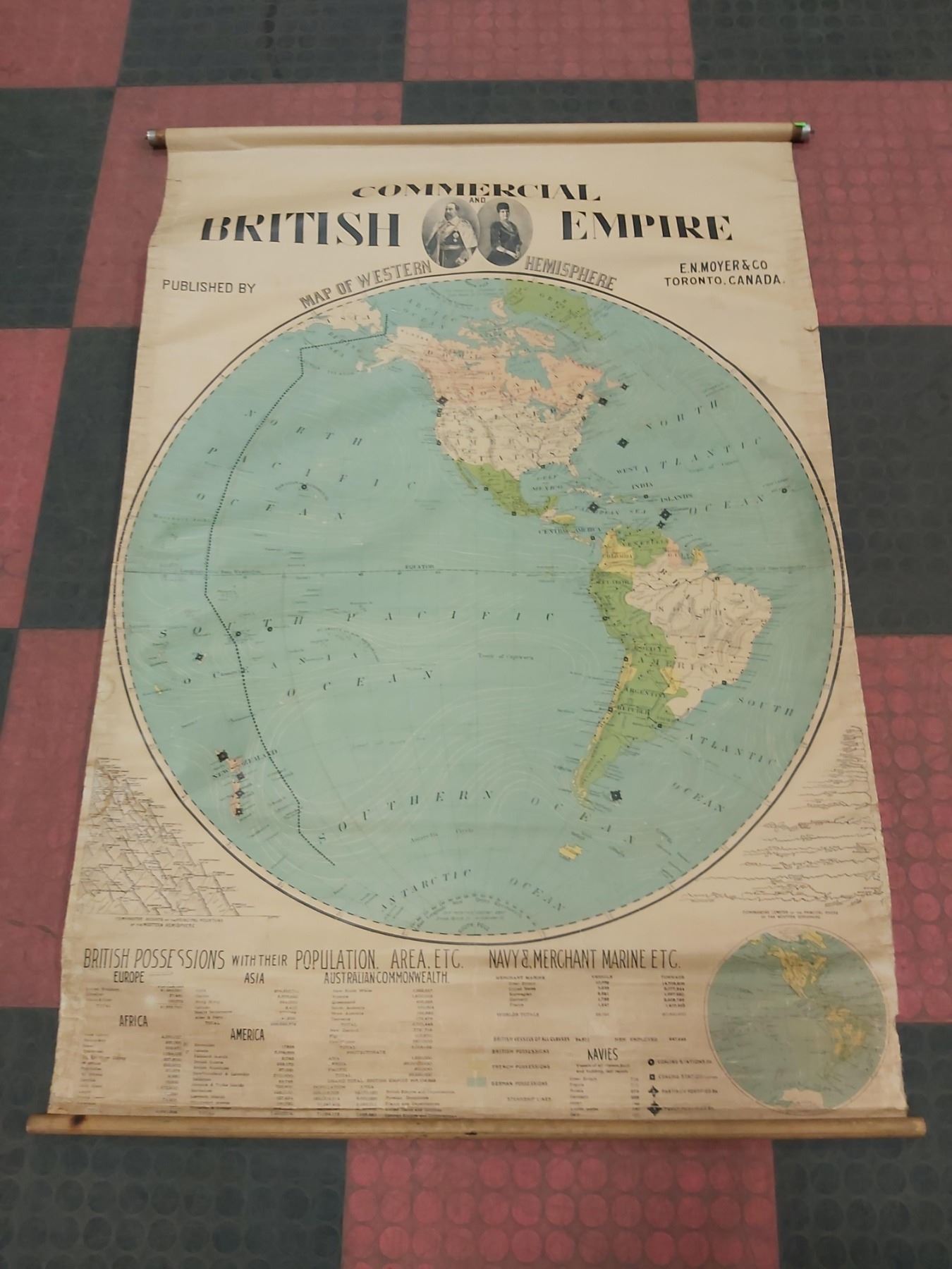 ANTIQUE LINEN/ PAPER MAP OF THE WESTERN HEMISPHERE
