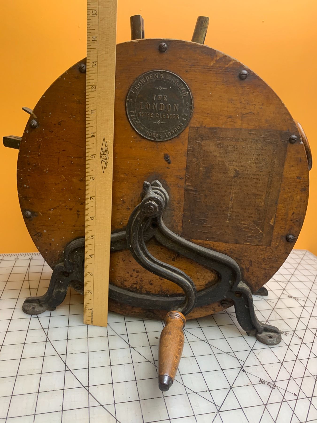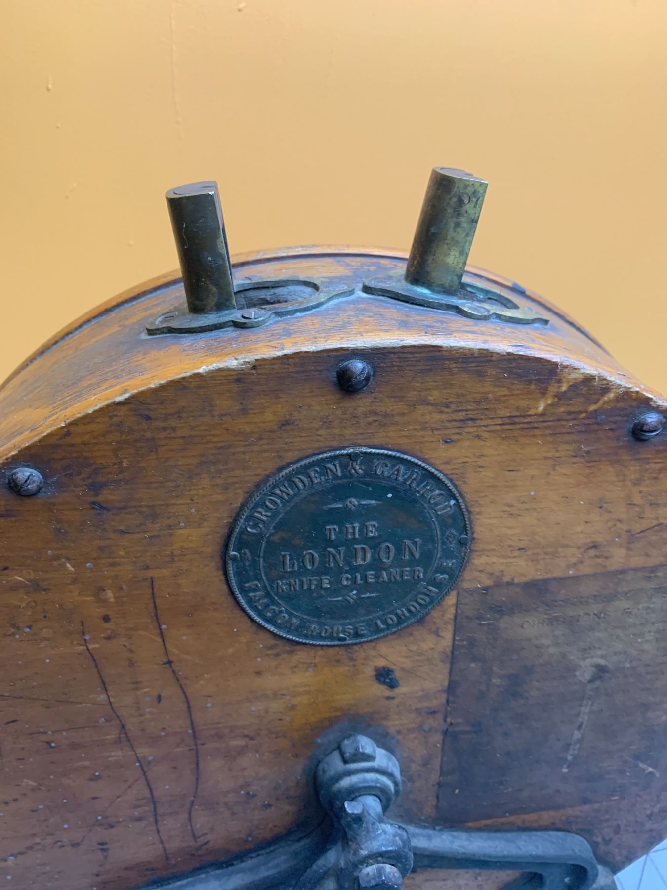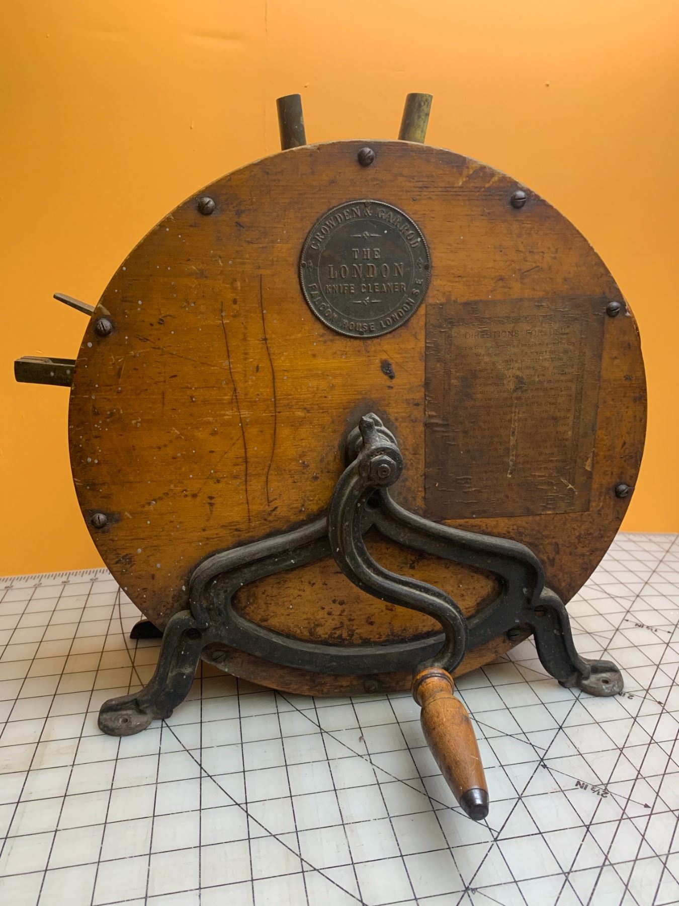 ANTIQUE LONDON KNIFE CLEANER / POLISHER MADE BY CROWDEN & GARROD, FALCON HOUSE LONDON