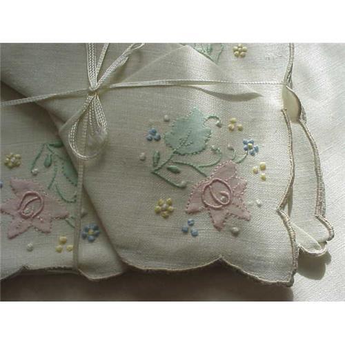 Exceptionally lovely is this fine MADEIRA linen set of placemats and napkins, with labels-never used! The set is wonderful linen in creamy white with ecru edging and absolutely gorgeous pastel colors applique work with such beautiful intricate hand embroidery work. The placemats measure 18 inches by 12 inches, the napkins each measure 11 inches by 11 inches, there are 4 placemats and 4 napkins to this fine linen set. The condition is excellent, still with original Madeira paper labels, perfect to enjoy using,displaying or giving as a gift. If you love antique linens such as Madeira, Irish linen and laces, you may wish to bookmark our site and check often for new additions.