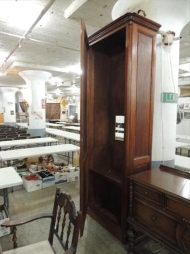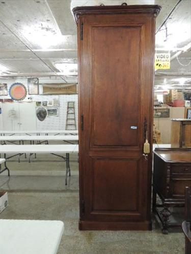 ANTIQUE MAHOGANY LINEN CLOSET CABINET 10' CEILINGS. IT HASBEEN CONVERT TO A ENTERTAINMENT CENTER. IRON FORGED HINGES. 37"L X 20"W X 108"H. AS SHOWN. VIEW PICTURE FOR DETAIL.