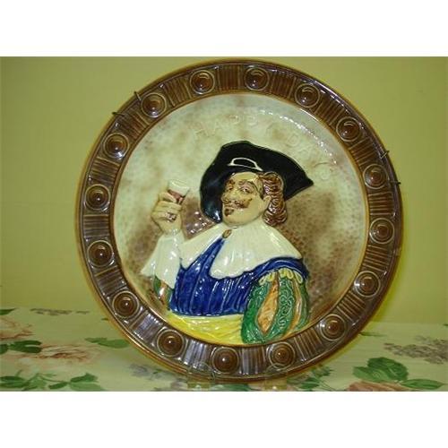 EARLY 1900'S MAJOLICA STYLE PLATE, MADE BY FALCON WARE OF ENGLAND, IT IS HAND PAINTED,ENTITLED HAPPY DAYS, Measuring about 10 3/4 inch, heavy, solid as Majolica Ware is, no chips or cracks, but for some glaze crazing, which is common to this ware, Heavy duty wire is made in England and is included with plate, US Buyer to pay 9.60 for shipping plus insurance.THANKS.