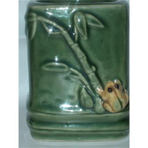 MAJOLICA VASE 19th-20th STAMPED ON BOTTOM B-163 GREAT CONDITION APPLIED BAMBOO AND FROG