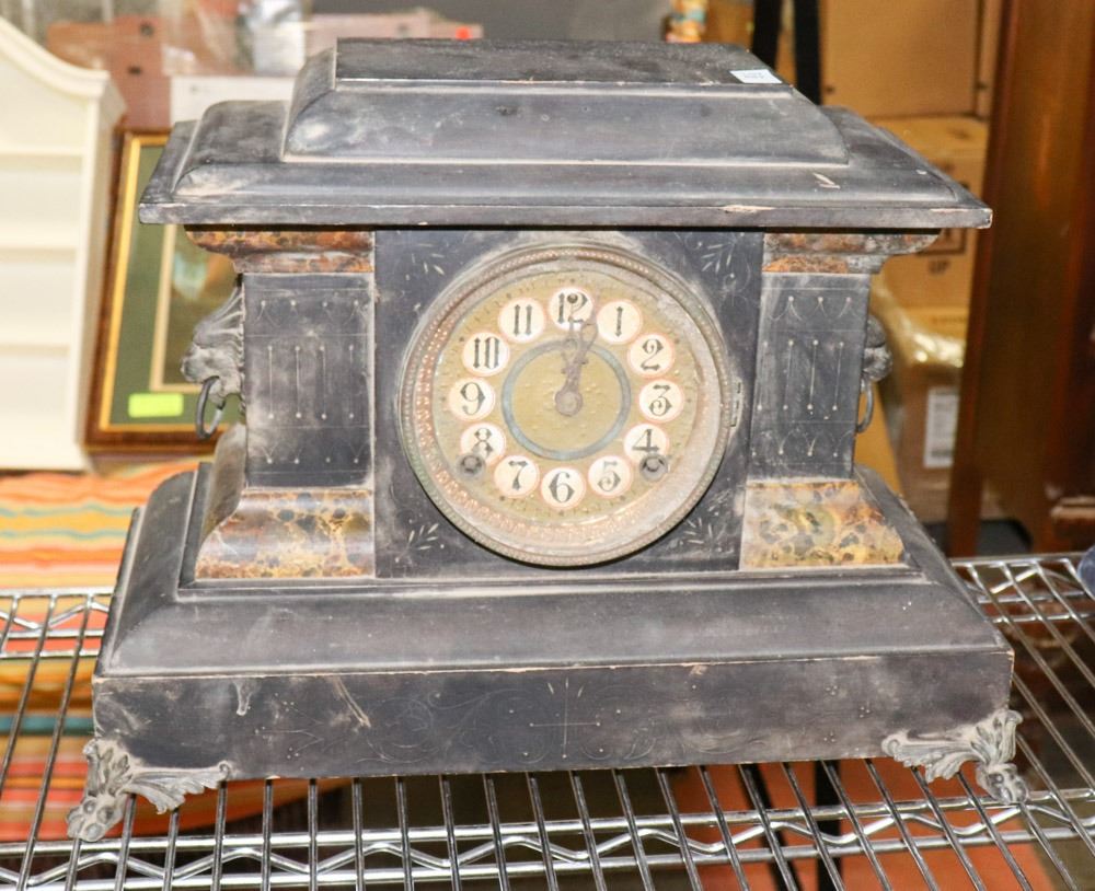 ANTIQUE MANTLE CLOCK NO KEYS UNKNOWN CONDITION