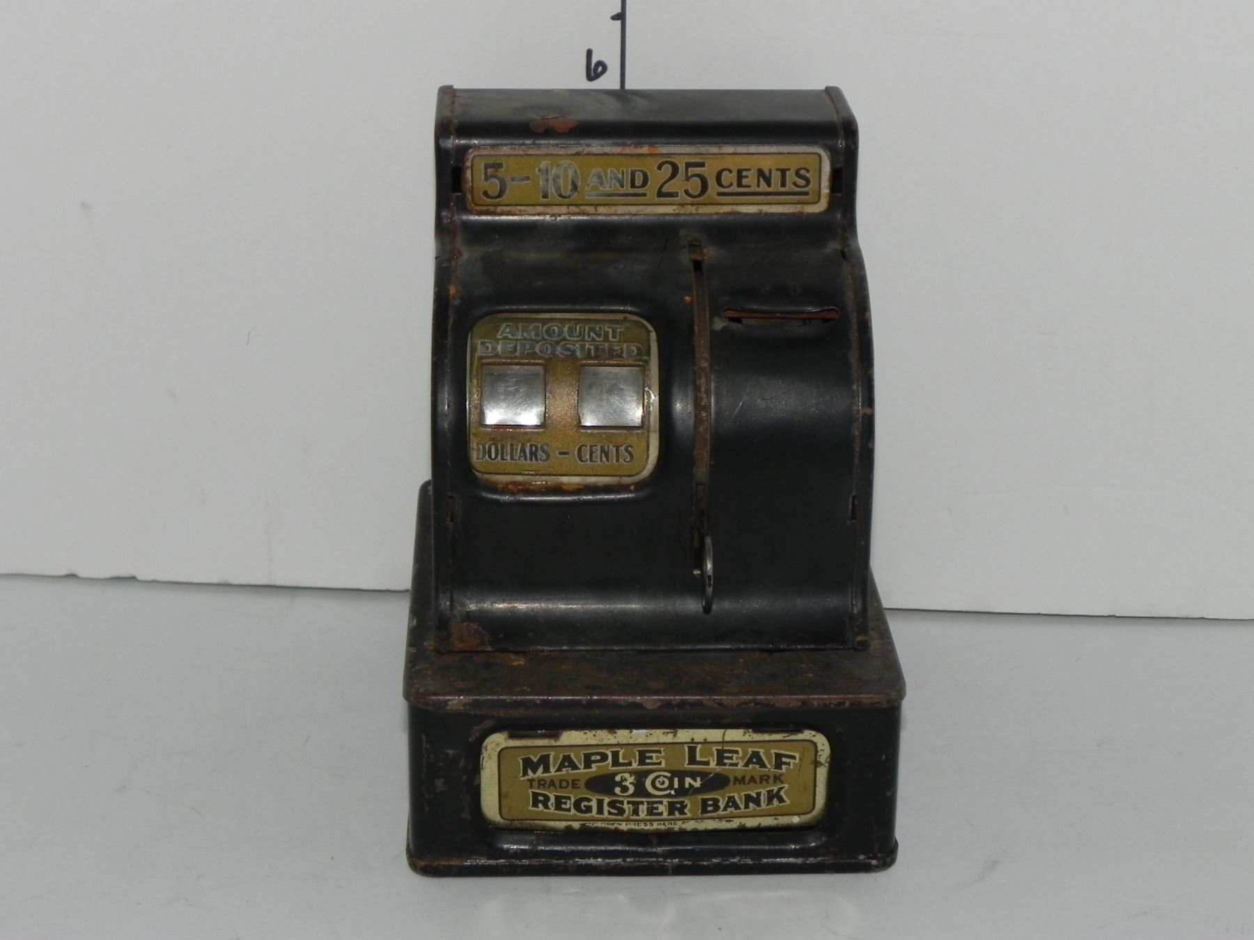 ANTIQUE MAPLE LEAF REGISTER BANK. NOT PERFECT BUT STILL VERY COLLECTIBLE! IDEAL BUISNESS DECOR FOR SURE