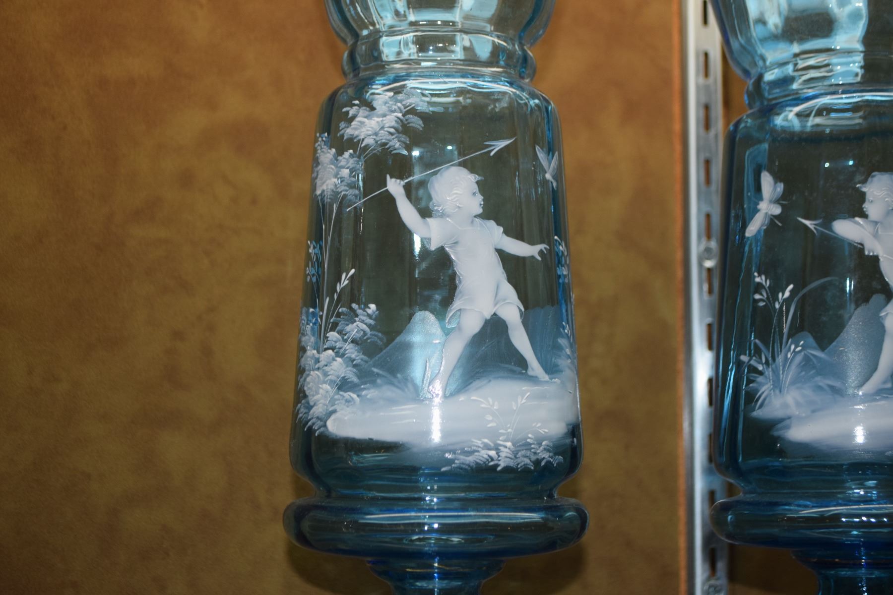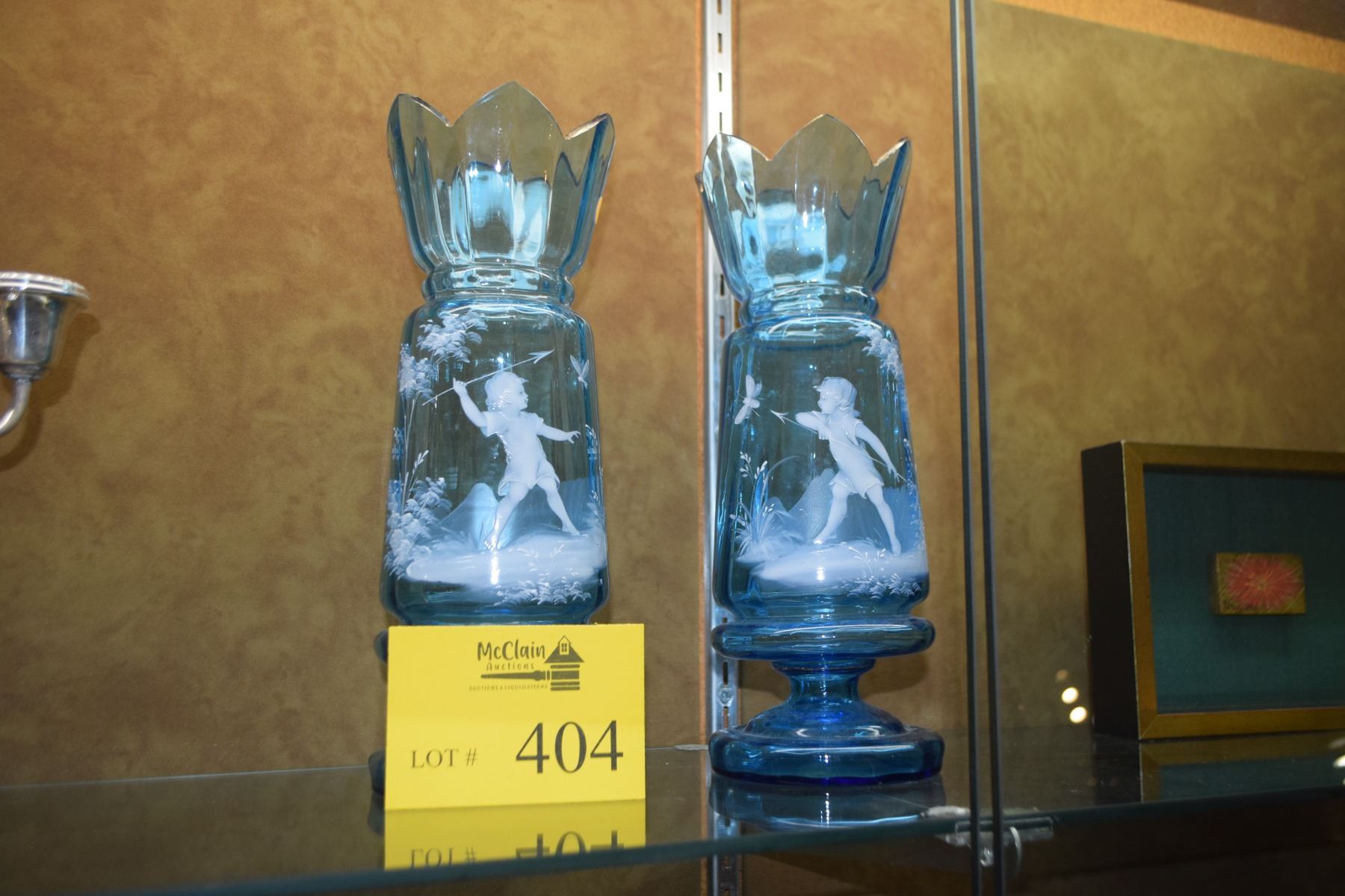ANTIQUE MARY GREGORY STYLE TURQUOISE COLOR HAND BLOWN GLASS BALUSTER VASES (12") (PAIR)