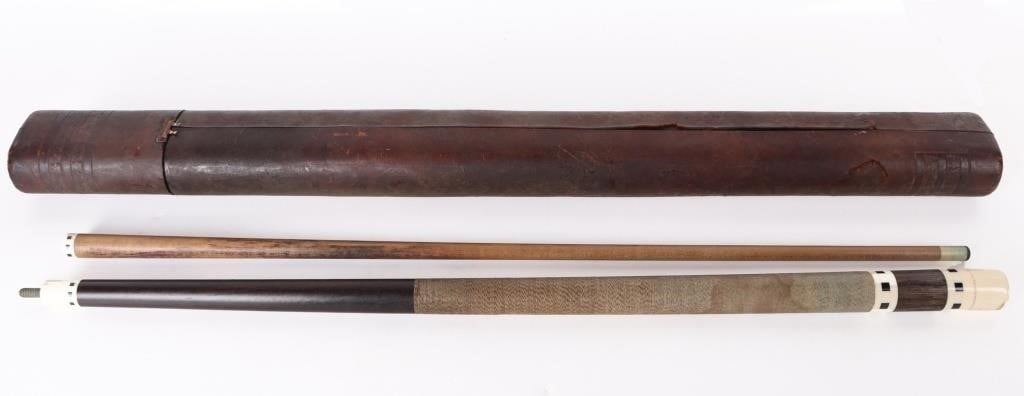 Antique Merucci originals pool cue w/ leather case.