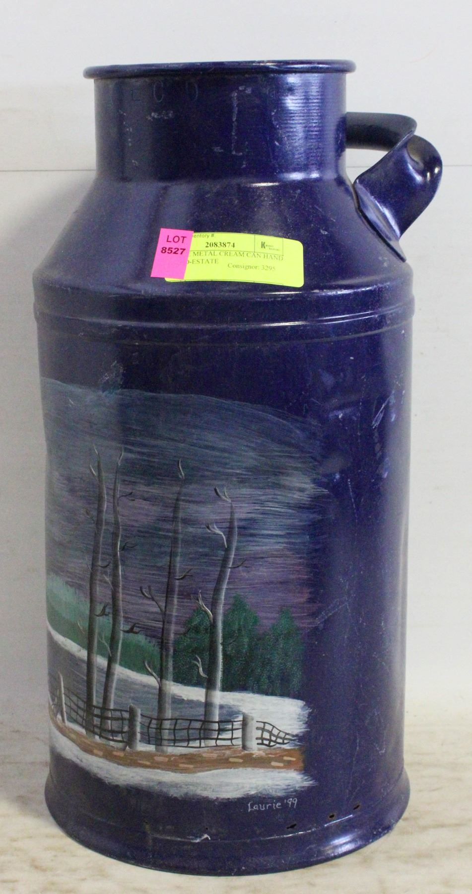 ANTIQUE METAL CREAM CAN HAND PAINTED-ESTATE