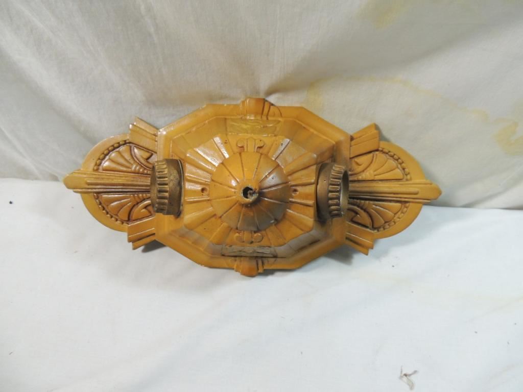 ANTIQUE METAL DOUBLE LIGHT WALL SCONCE, DOUBLE BULB SCONCE, ART DECO, AS SHOWN SEE PHOTO FOR MORE DETAILS.