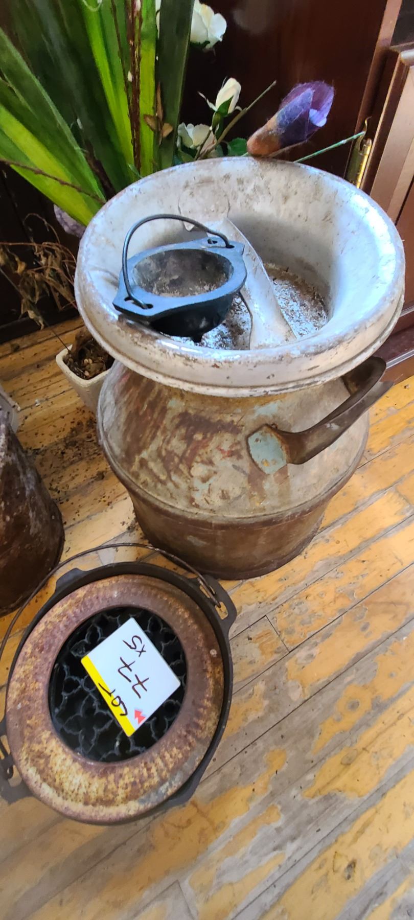 ANTIQUE MILK CAN, METAL BUCKET, COAL ECT