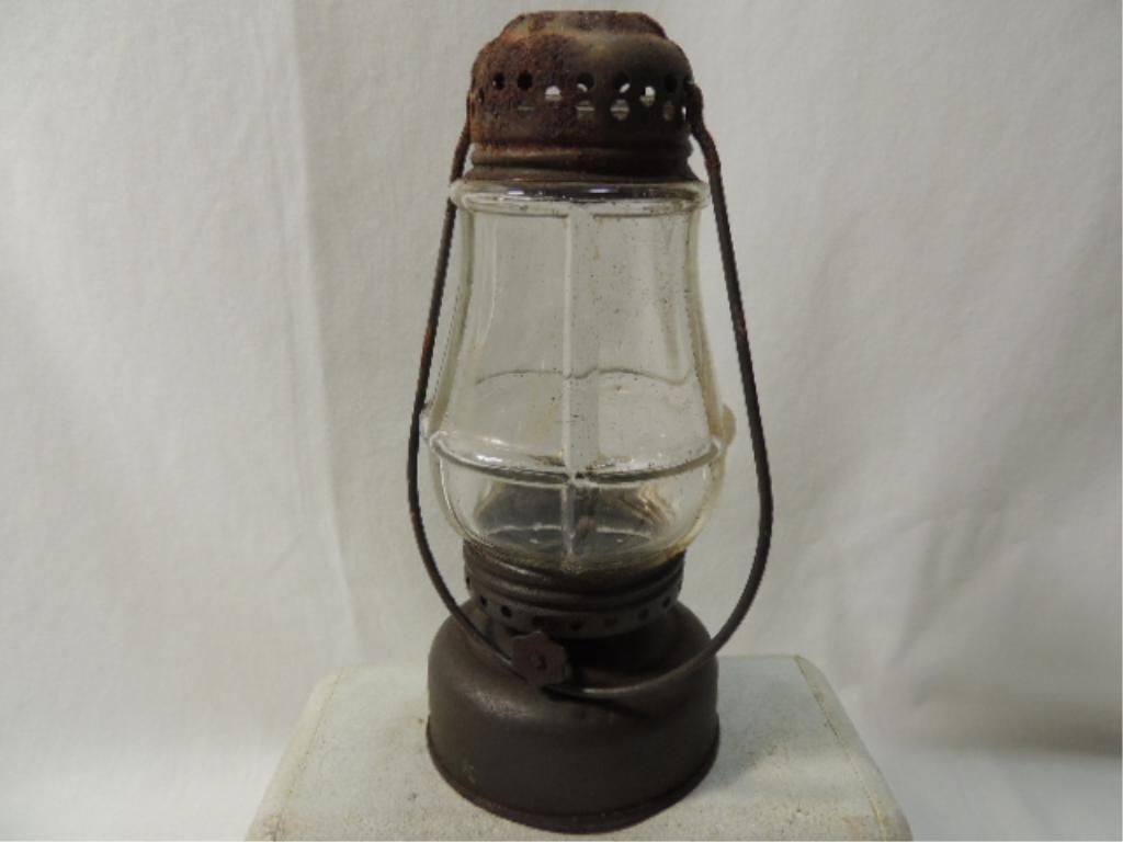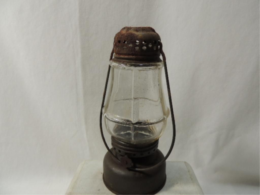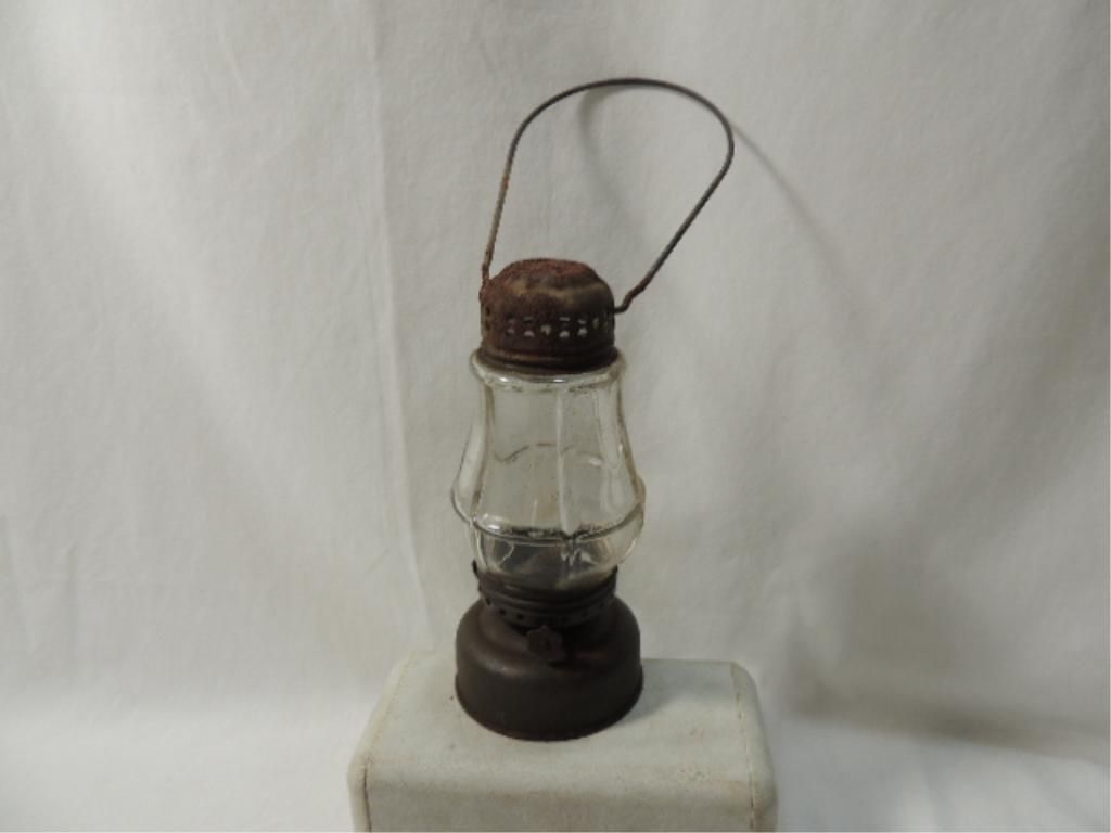 HURRICANE LANTERN ANTIQUE MINI LANTERN. 6 1/2INCHES TALL. AS SHOWN. SEE PHOTO FOR MORE DETAILS.