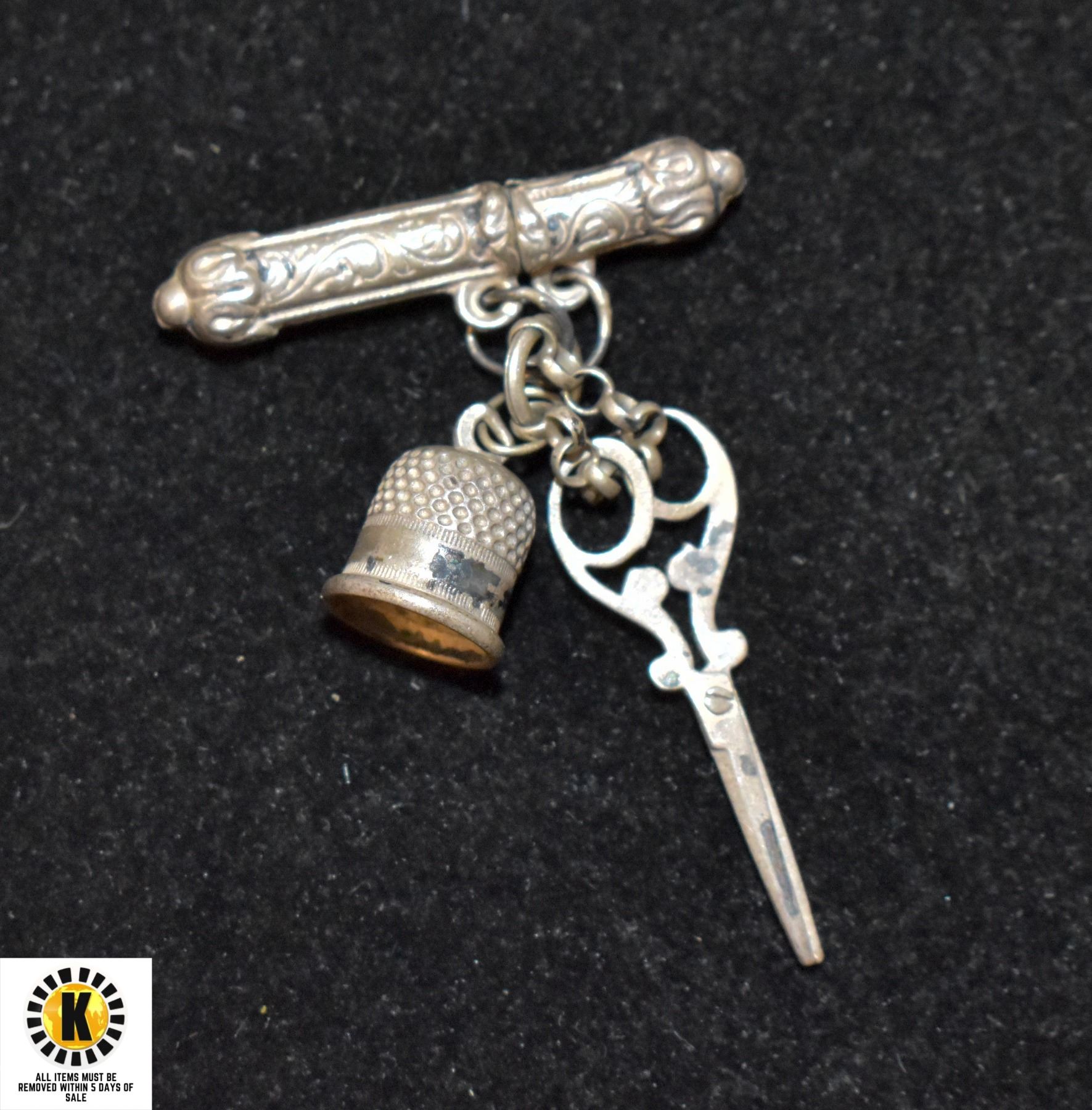ANTIQUE MINIATURE THIMBLE SCISSORS AND CASE