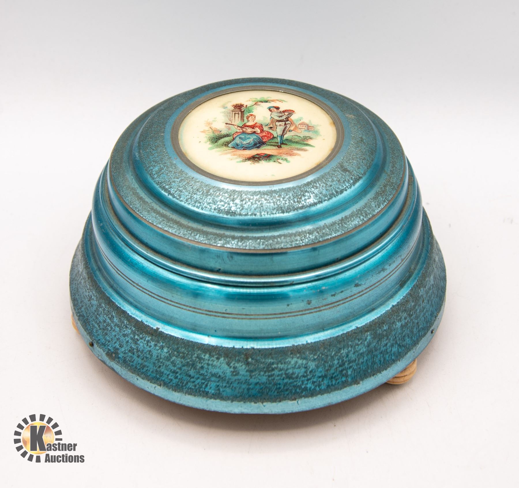 ANTIQUE MUSICAL POWDER BOX, WORKS
