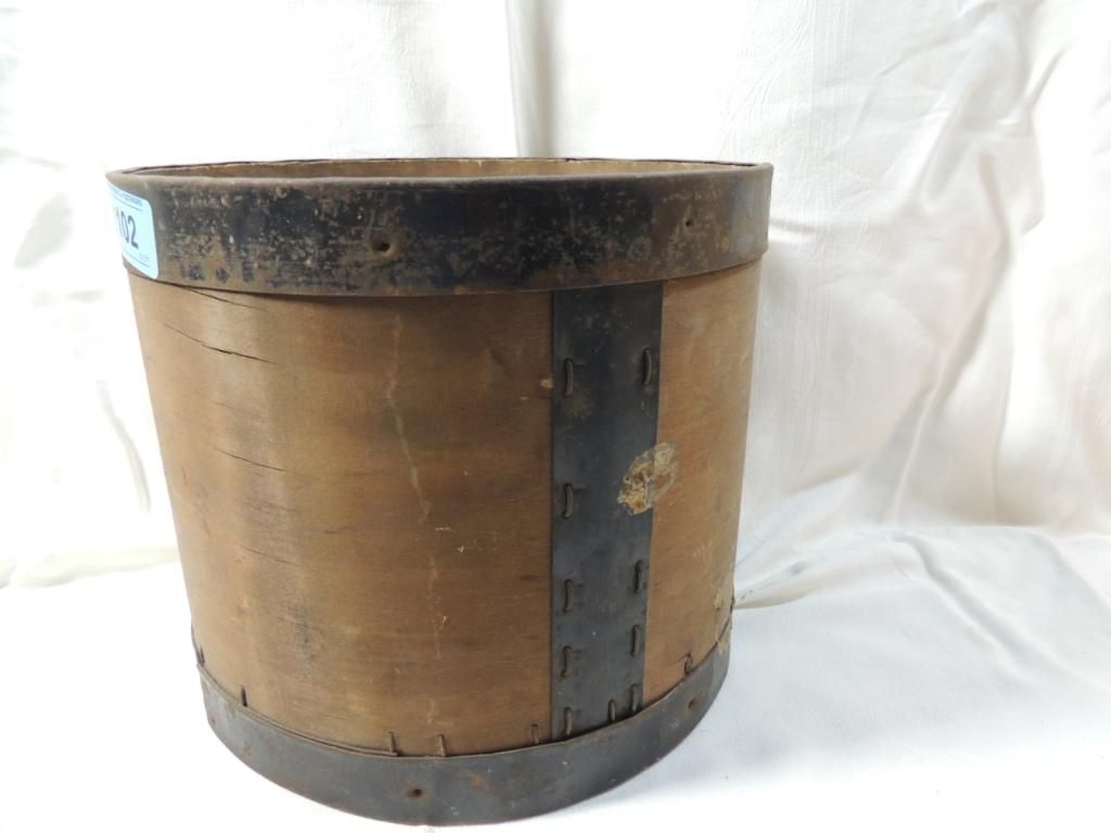 PRIMATIVE VINTAGE ANTIQUE NAIL BARREL DRUM. AS SHOWN. SEE PHOTO FOR MORE DETAILS.
