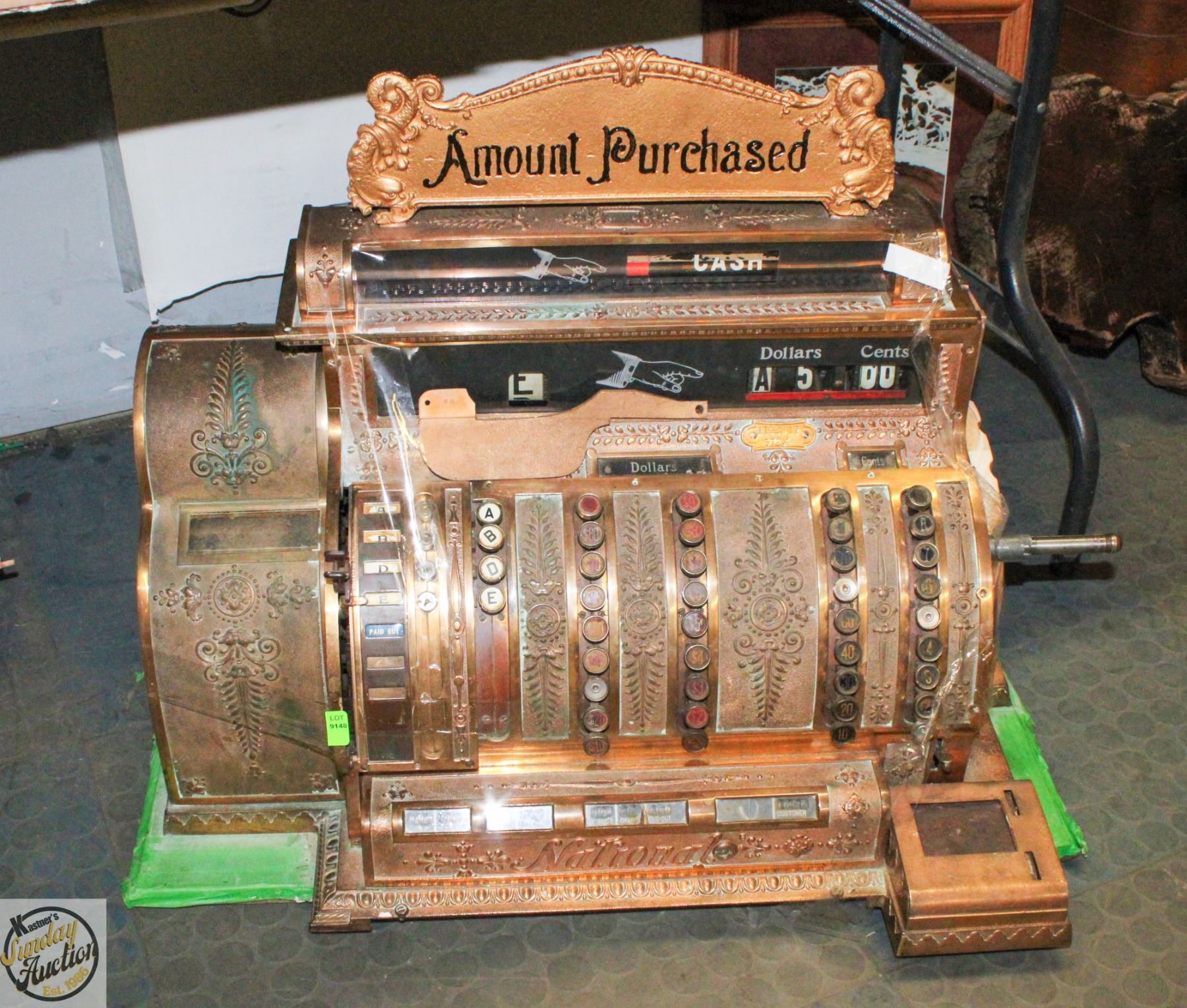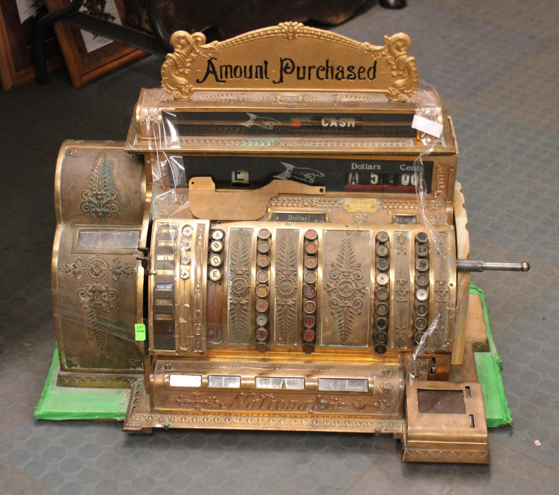 ANTIQUE NATIONAL CASH REGISTER - ORNATE BRASS