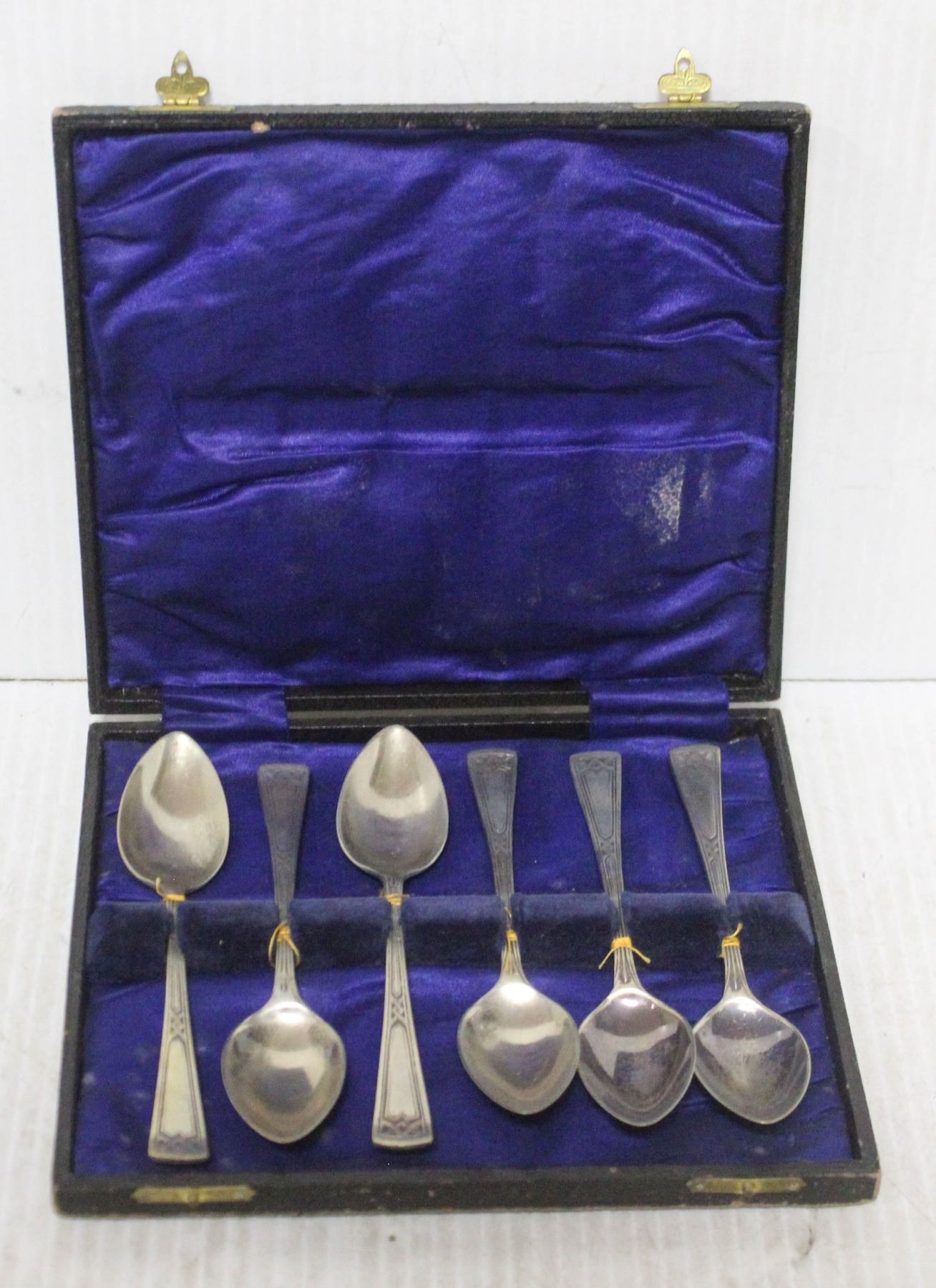 ANTIQUE NICKEL SILVER SPOON SET IN CASE