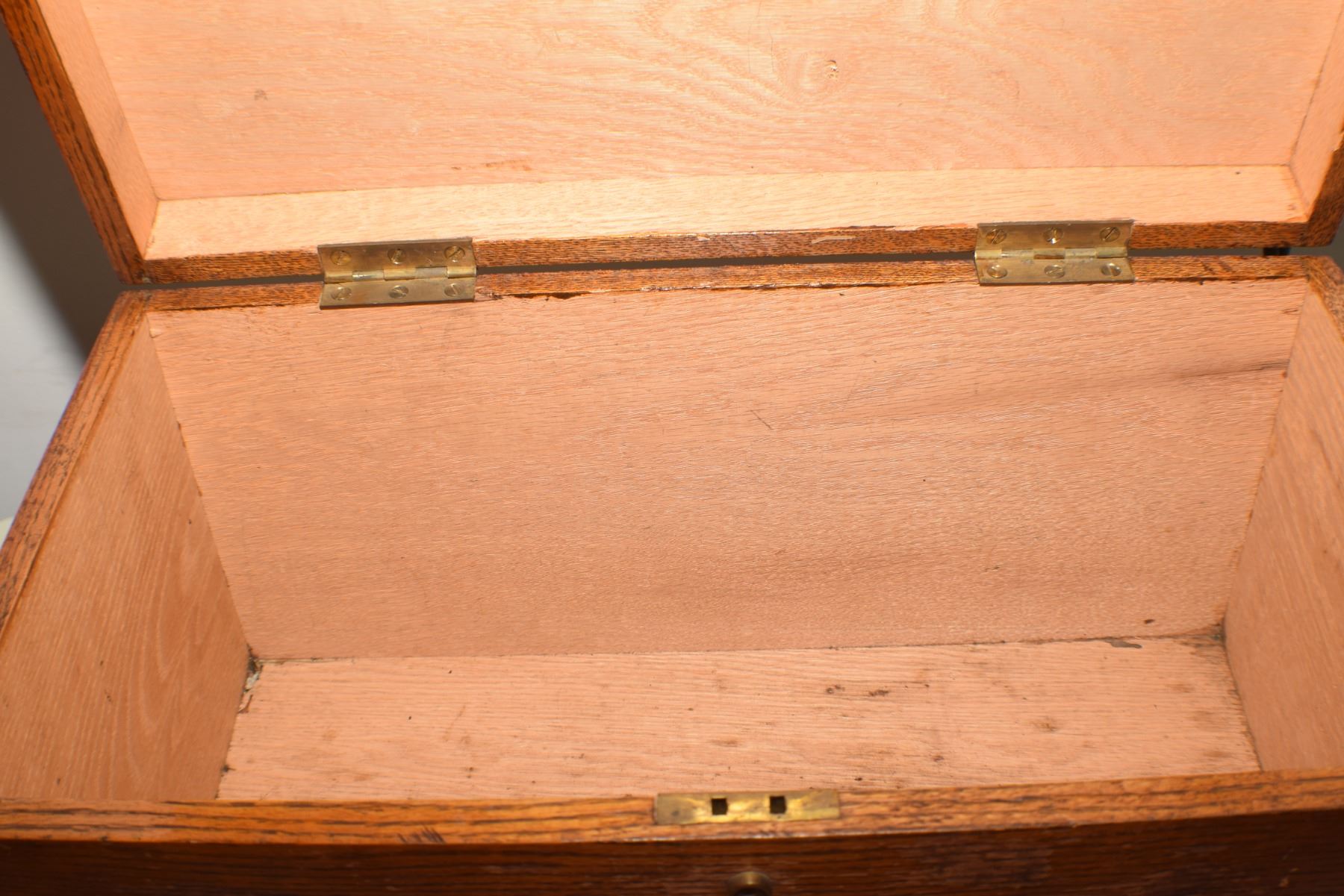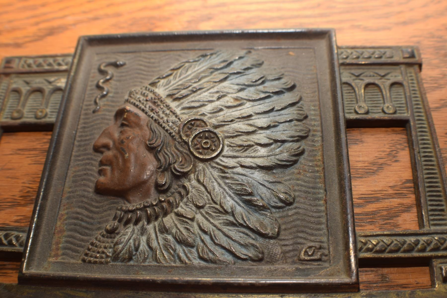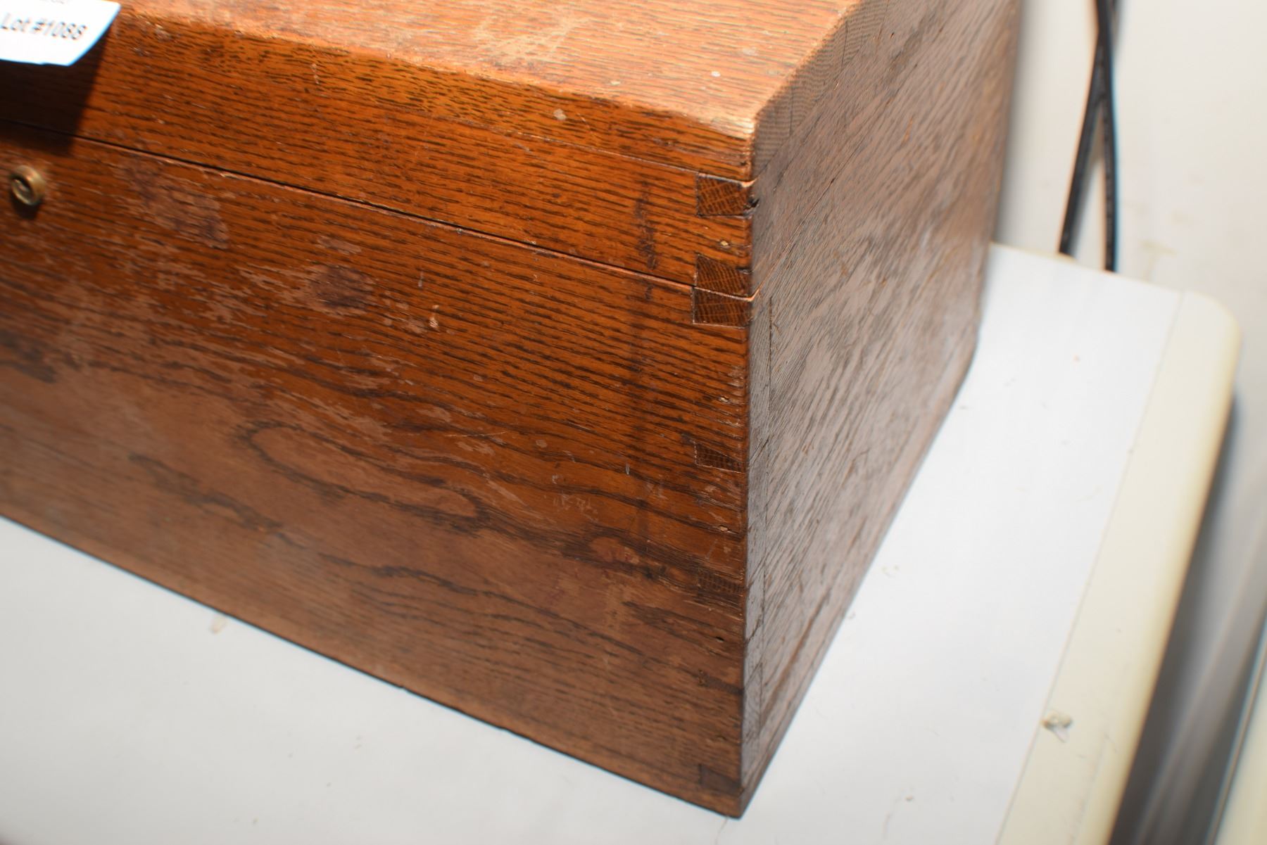 ANTIQUE OAK DOVETAILED CHEST WITH LOCK AND KEY INDIAN CHIEF BRANDING