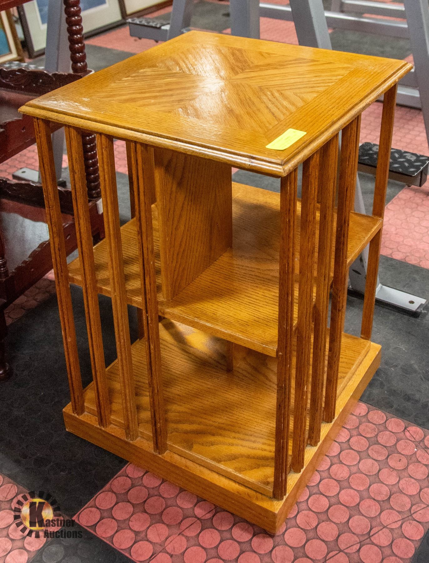 ANTIQUE OAK REVOLVING BOOKCASE- 26" X 16" X 16"