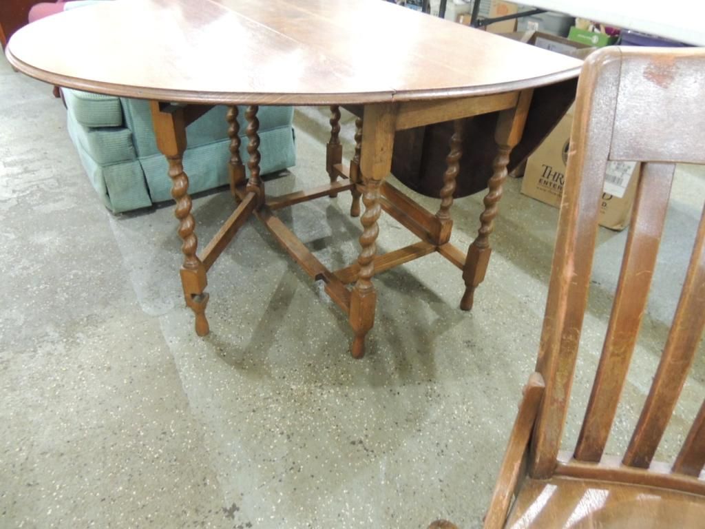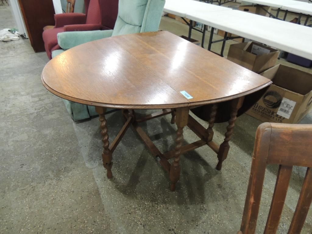 ANTIQUE OAK SIDE TABLE UNIQUE TABLE FOLDING AS SHOWN. SEE PHOTO FOR MORE DETAILS.