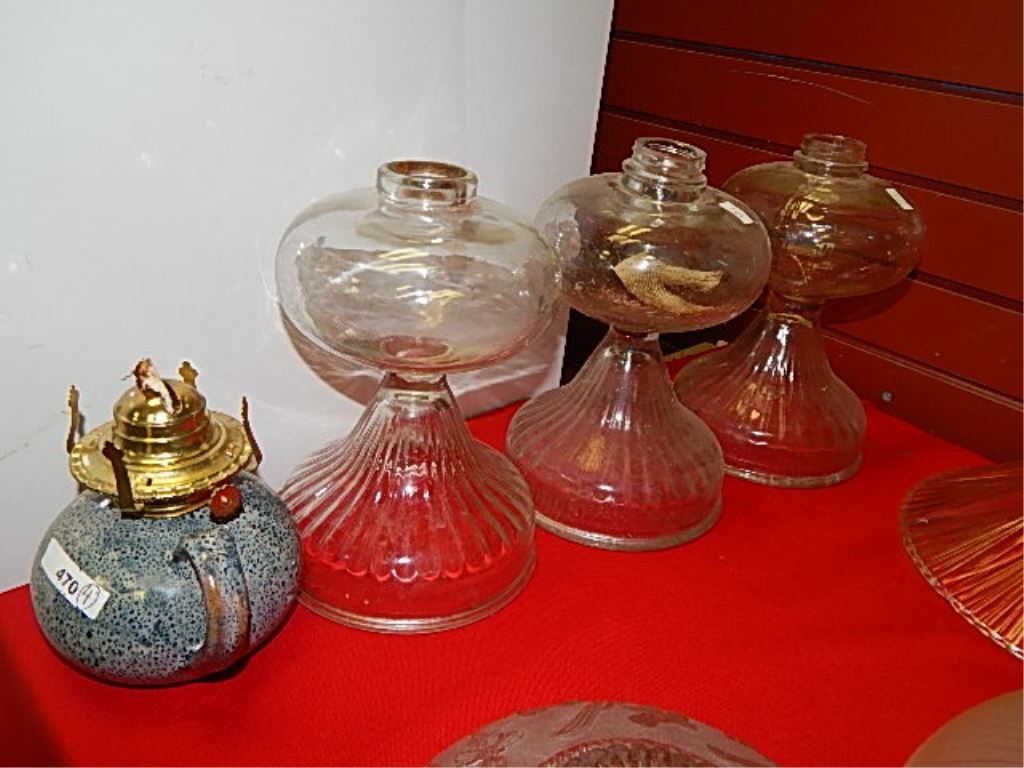 ANTIQUE OIL LANTERN BASES - 3 & ONE CLAY ONE