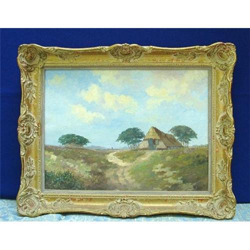 THIS IS LOVELY VINTAGE OIL ON CANVAS PICTURE, DEPICTING CHARMING COUNTRY SCENE, FRAMED IN GORGEOUS ORNATE ANTIQUE FRAME, WITH ART NOUVEAU STYLE DECORATION, as per image - Excellent condition, Measuring about 19 3/4" x 15 3/4", US Buyer to pay 18.00 for shipping plus insurance.THANKS.