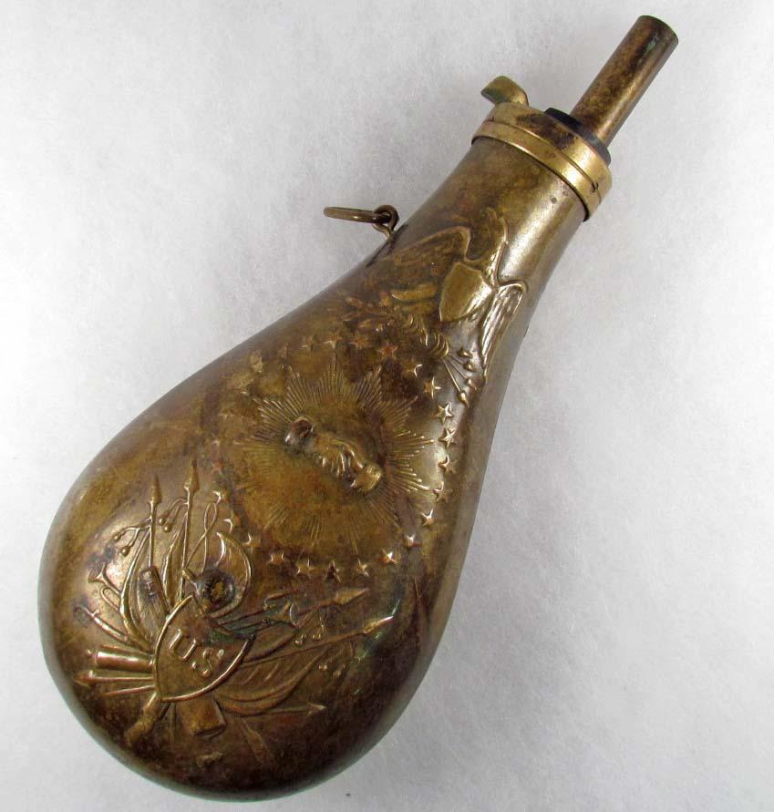 approx. 3.75" by 9". Very patriotic motif that shows an American Eagle, crossed cannons, flags, rifles, trumpets, musket and 2 hands shaking in the center.