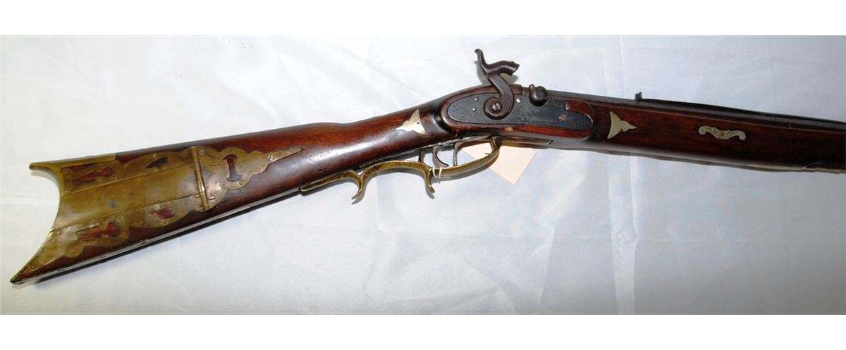 ANTIQUE PERCUSSION LONG GUN - ENGRAVED & INLAID - OCTAGON BARREL (DOES NOT HAVE A CASE)
