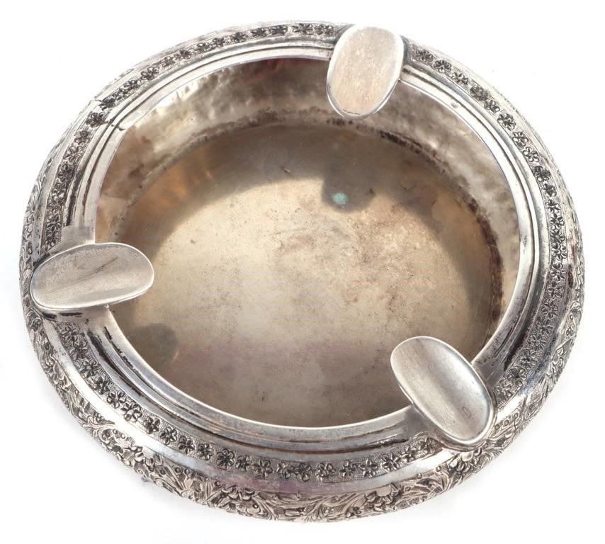 Antique Persian .800 silver ash tray. The edge of the ash tray features a repousse design.