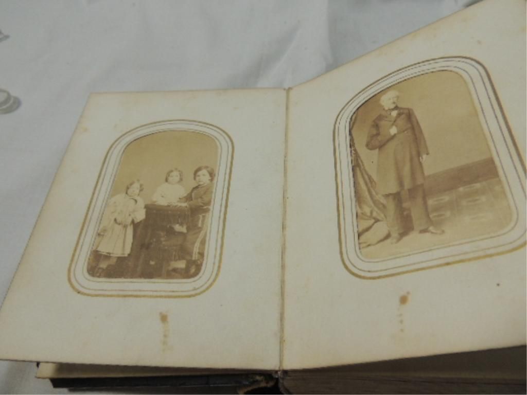 ANTIQUE PHOTO ALBUM CIVIL WAR ERA. FILLED WITH 35+ CDV AND TINYTYPE PHOTOS MILITARY PHOTOS. CIVIL WAR PHOTOS, AS SHOWN SEE PHOTO FOR MORE DETAILS.