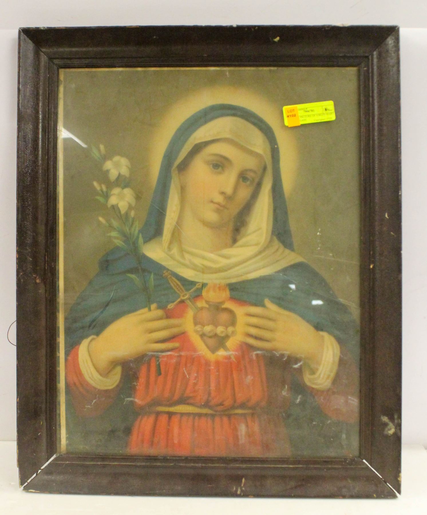 ANTIQUE PICTURE OF VIRGIN MARY CRACK GLASS