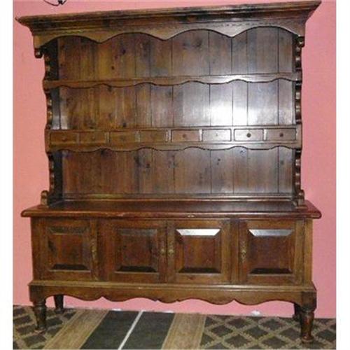 This is a wonderful antique dresser cupboard cabinet with four spice drawers, grooved plate holders, two bottom cabinets and two large center drawers.