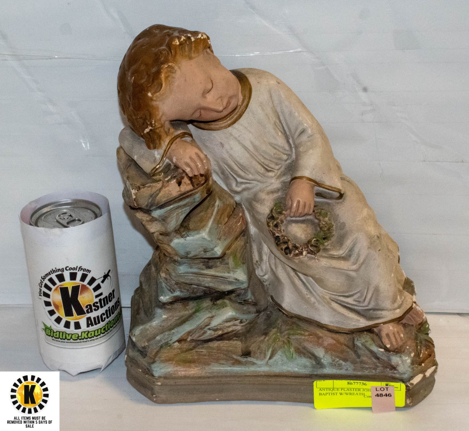 ANTIQUE PLASTER JOHN THE BAPTIST W/WREATH