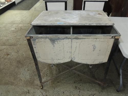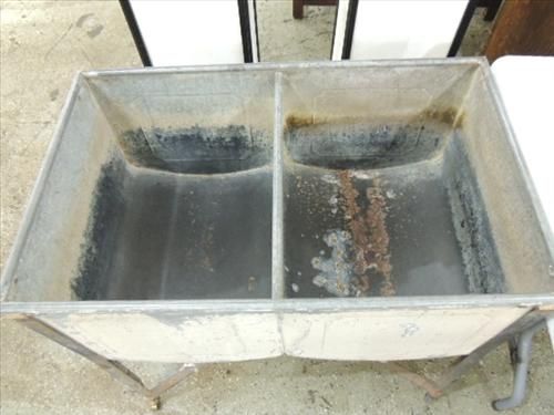 ANTIQUE PRESSED ROLLER METAL DOUBLE WASH BASIN. 34"WX21"DX31"H. AS SHOWN. VIEW PICTURE FOR DETAIL.