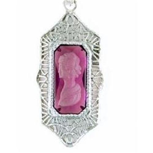 This Vintage Style Pendant and Necklace AUTHENTICALLY reproduces one from the 1920's and this one is in Mint condition! This necklace is SOLID STERLING Silver and the Carved AMETHYST Intaglio features the profile of a woman. The Amethyst is surrounded by exquisite FILIGREE work. It is suspended from a Sterling Silver 18" chain. The pendant itself is 1 1/4" in length.