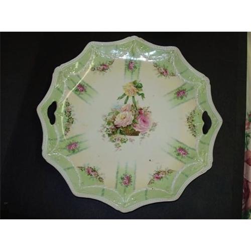 VICTORIAN VERY FINE LARGE PLATE, IT IS NOT MARKED BUT OBSERVING THE FANCY, FINE, AND DELICATE CHINA, COLORS, RAISED PATTERN SHAPE ETC, I CAME TO CONCLUSION THAT IT PROBABLY IS UNSIGNED RS PRUSSIA OR RS GERMANY, LOVE THE FLORAL GARLANDS IN RAISED FASHION, ROSE GARLANDS AND MOST OF ALL LARGE EXQUISITE PINK ROSES THAT GRACE THE CENTER OF THIS LARGE PLATE, WHICH HAS 2 OPEN HANDLES, as per images - Measuring about 11 1/4 inch, no chips or cracks, US Buyer to pay 9.60 for shipping plus insurance.THANKS.