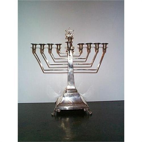<table width="100%" border="0" cellspacing="0" cellpadding="4"><tr><td><em> RARE ENGLISH STERLING MUSICAL MENORAH-WIND UP TO PLAY ITS SONG!</em></td></tr><tr> <td width="100%"> A GORGEOUS STERLING SILVER MENORAH STANDING 11" TALL AND 10" LONG. BASE ITSELF IS 5" SQUARE. MADE IN ENGLAND 1956, WITH MAKER'S MARK OF "AS". FRONT CANDLE UNHOOKS. SONG TITLE I'M NOT SURE OF, BUT WORDS STARTS AS FOLLOWS, ACCORING TO A FRIEND OF MINE: O MIGHTY ROCK OF MY SALVATION TO PRAISE YOU IS A DELIGHT. RESTORE MY HOUSE OF PRAYER...