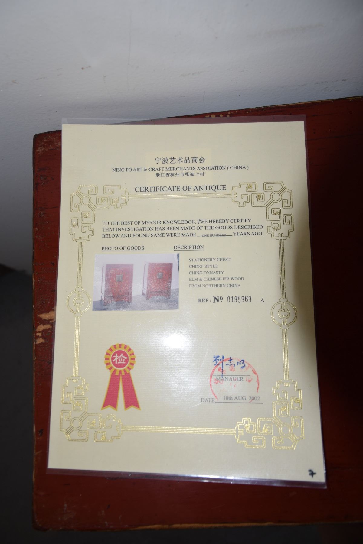 ANTIQUE RED CHINESE CHESTS, CHING STYLE (PAIR)