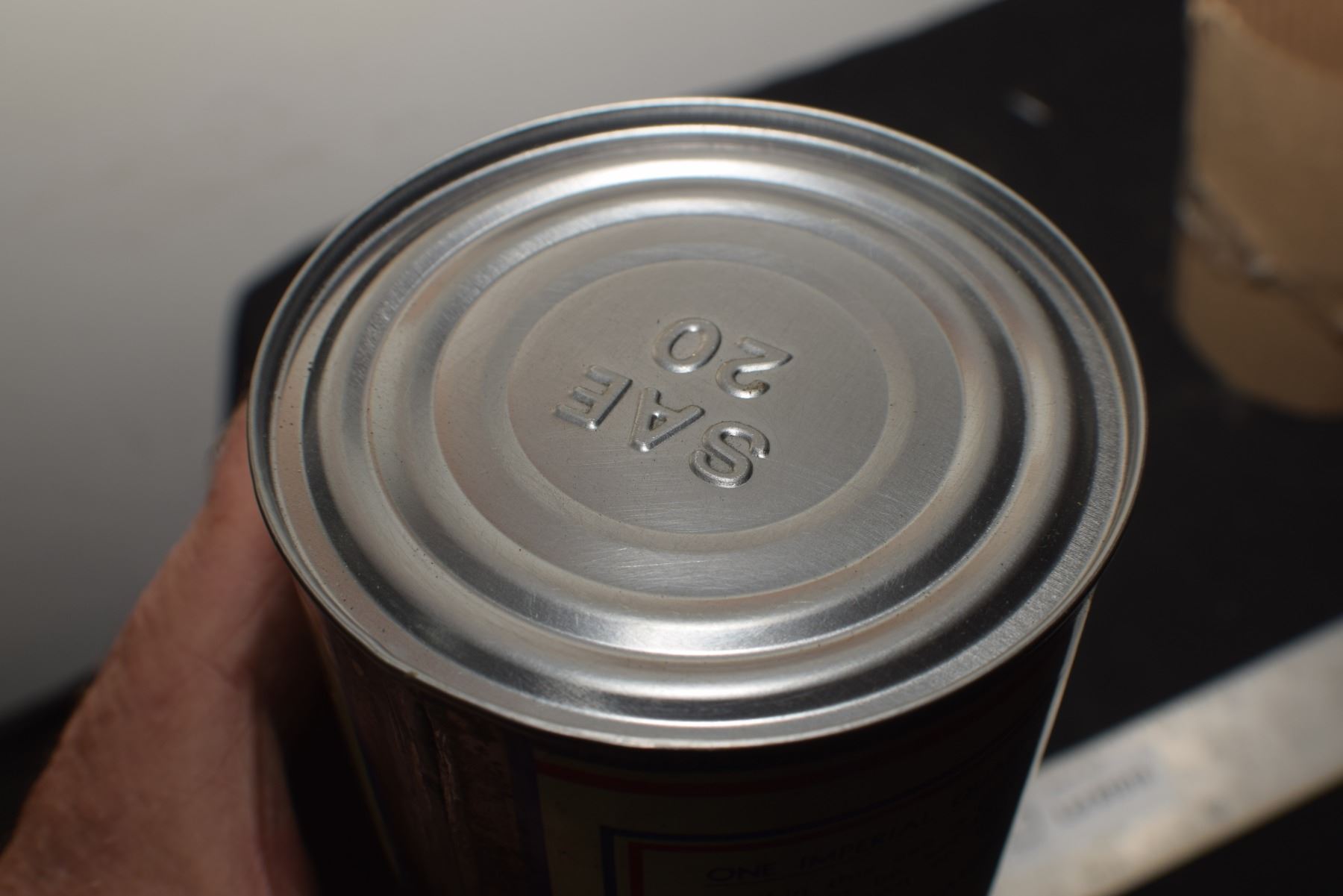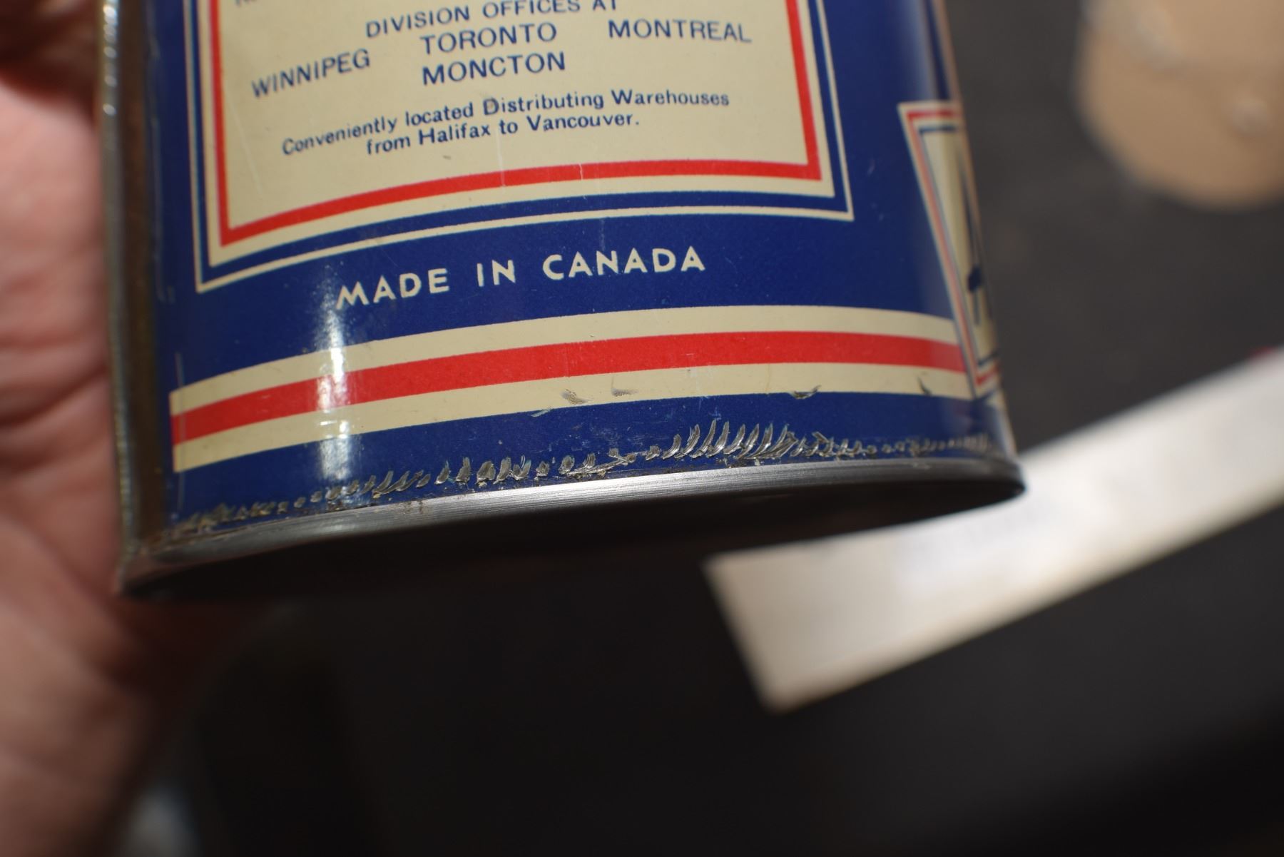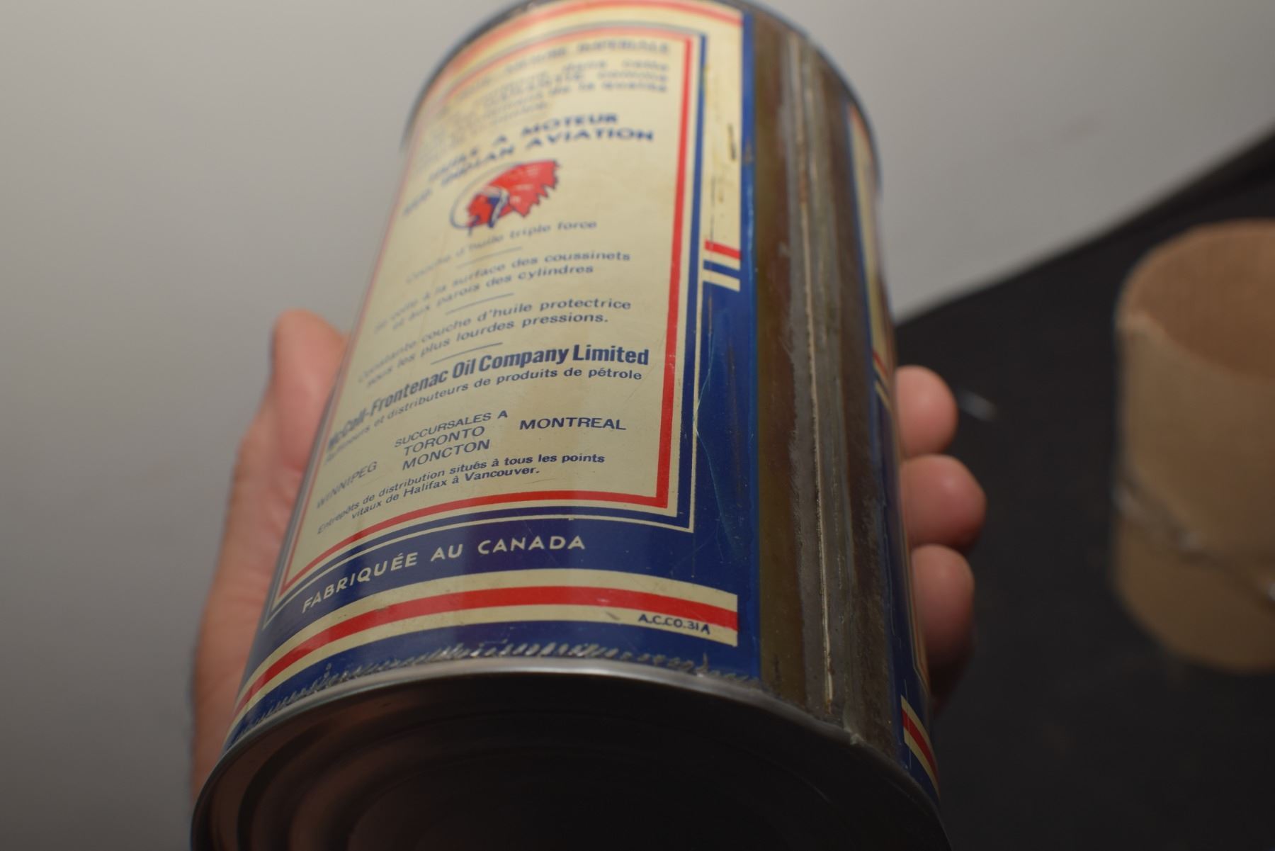 ANTIQUE RED INDIAN QUART OIL TIN , THIS IS A RE-ROLL NOT A NEWER WRAP