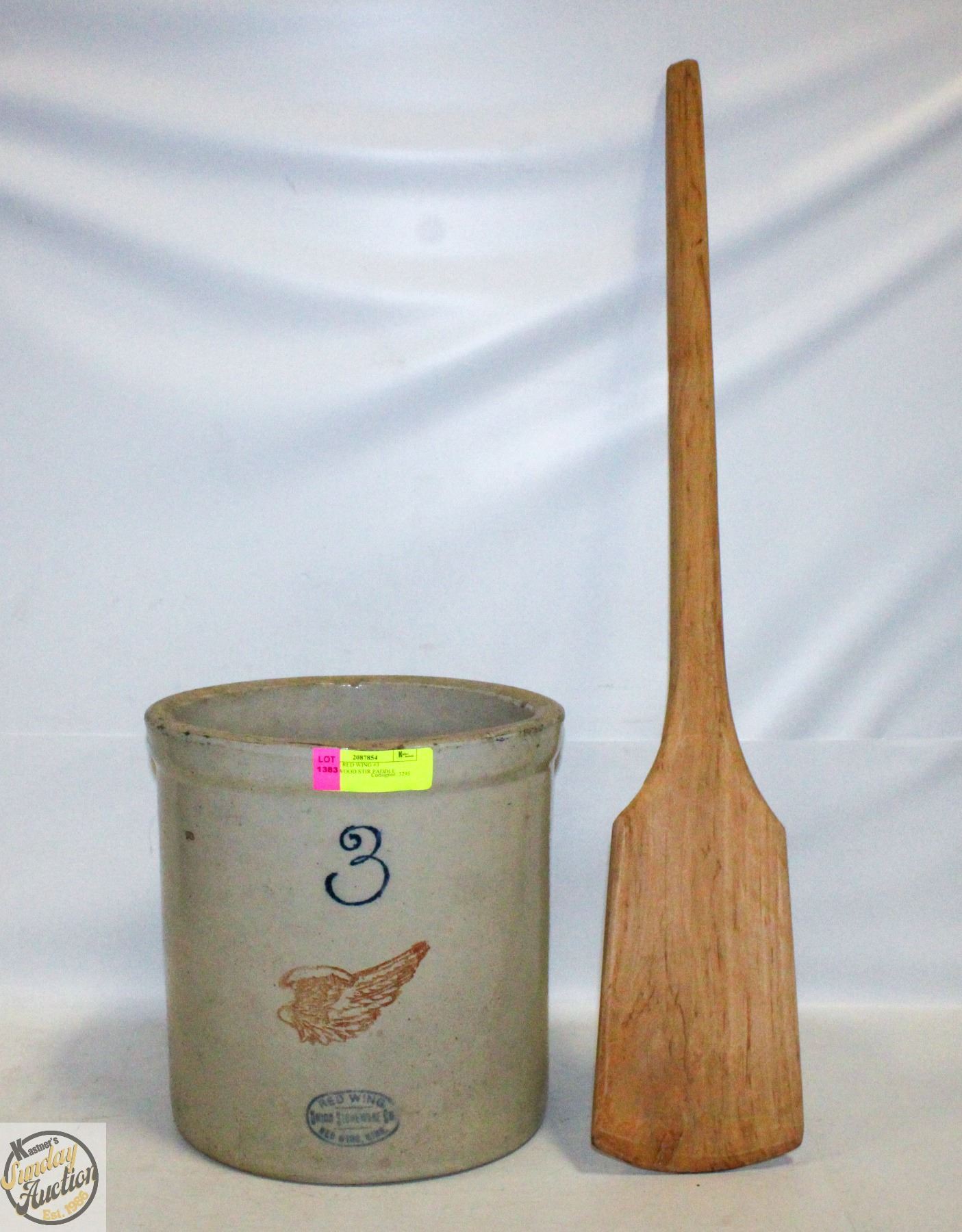 ANTIQUE RED WING #3 CROCK+WOOD STIR PADDLE